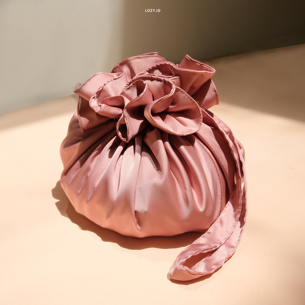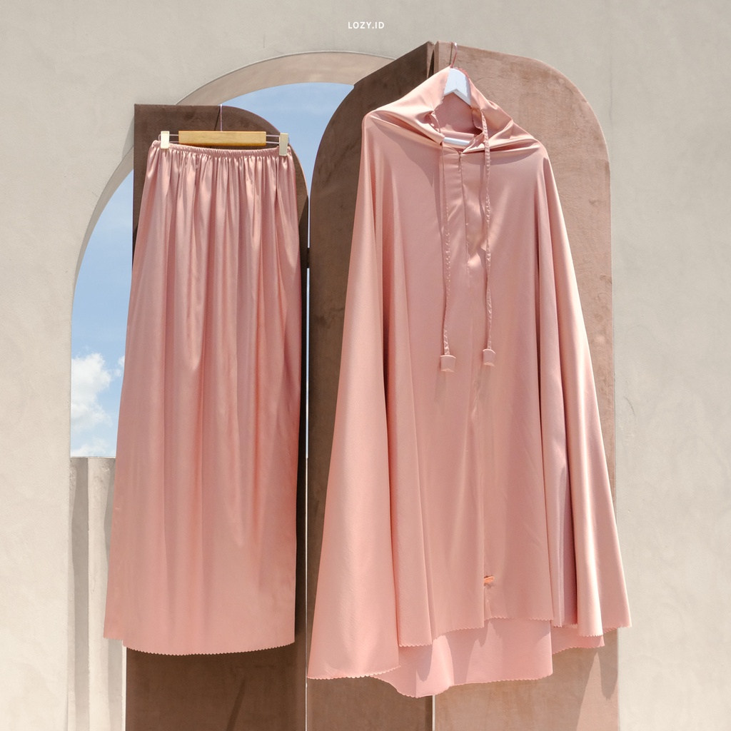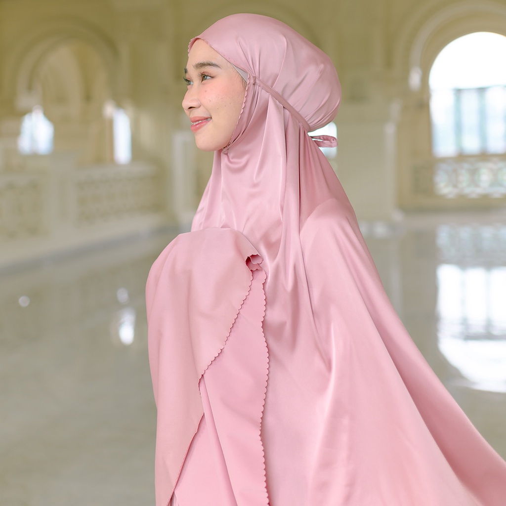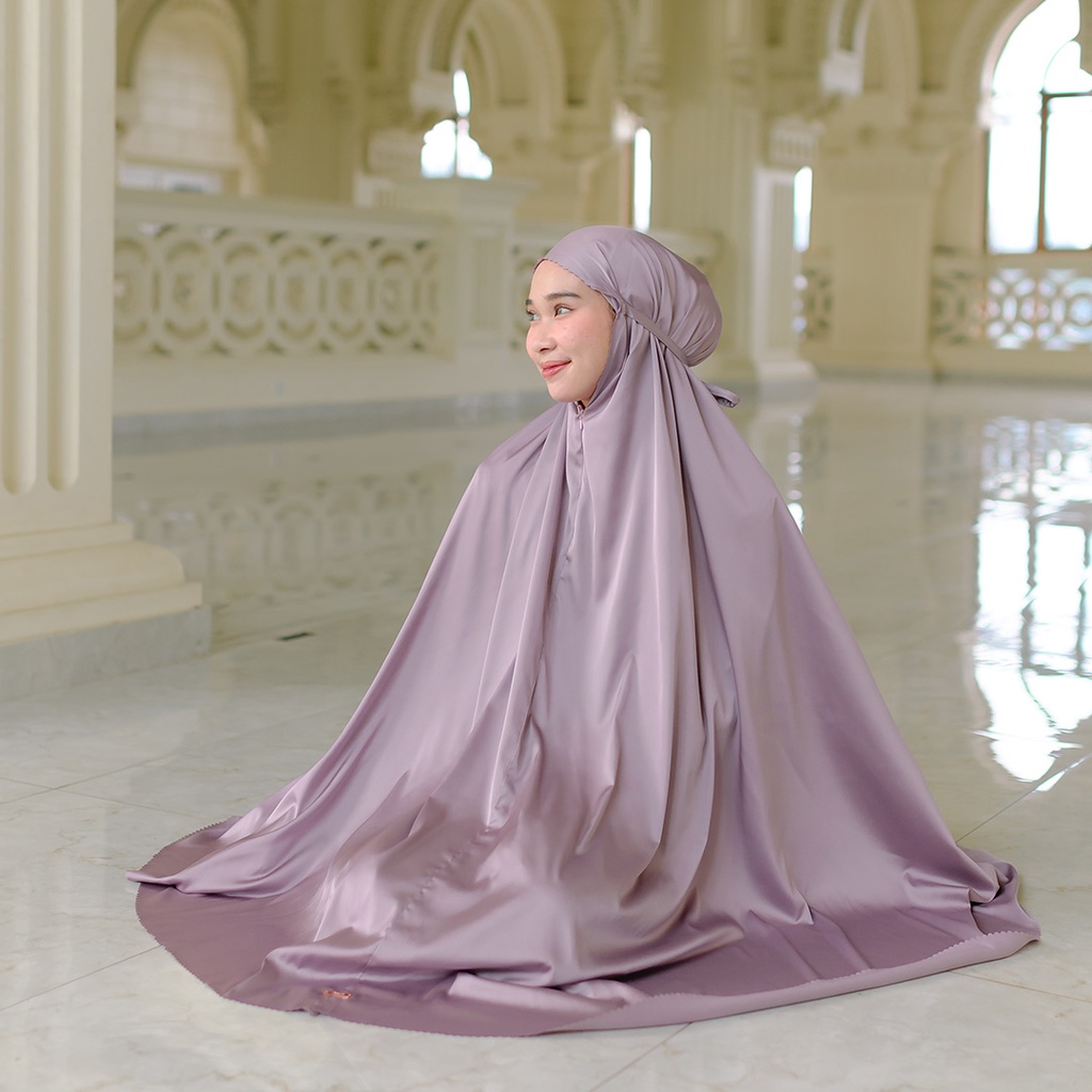 LOZY HIJAB - MECCA PRAYER SET WITH NEW POUCH ( MUKENA SATIN LASERCUT )