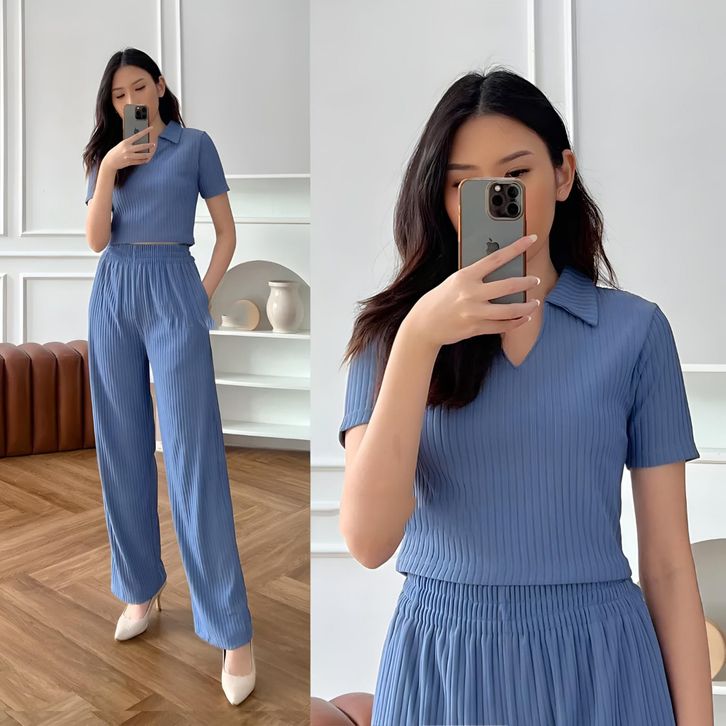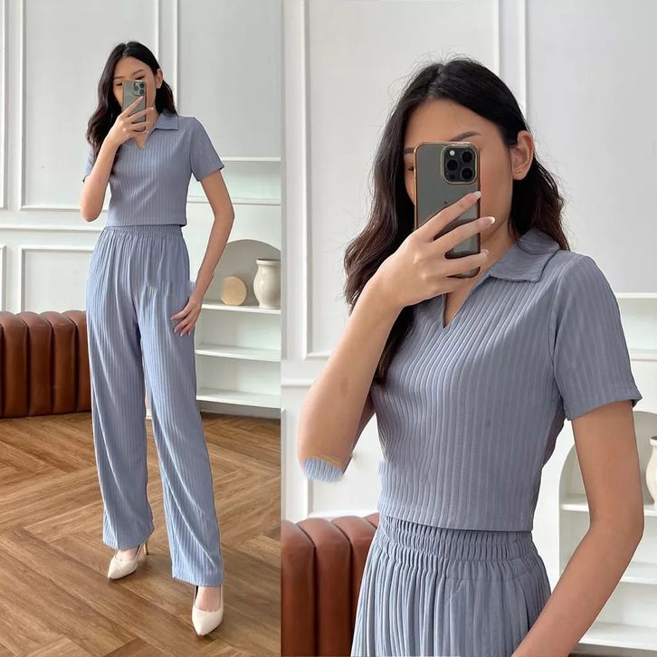 RIB KNIT SIERRA SET CROP TOP AND PREMIUM RIB KNIT PANTS | SETELAN WANITA MUAH BERKUALITAS | SETELAN WANITA TERLARIS | ON