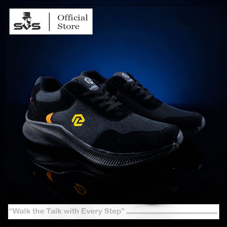 ARSEN BLACK | Salisstore - LEON | Sepatu Running Pria Casual Hitam Mesh Suede Original