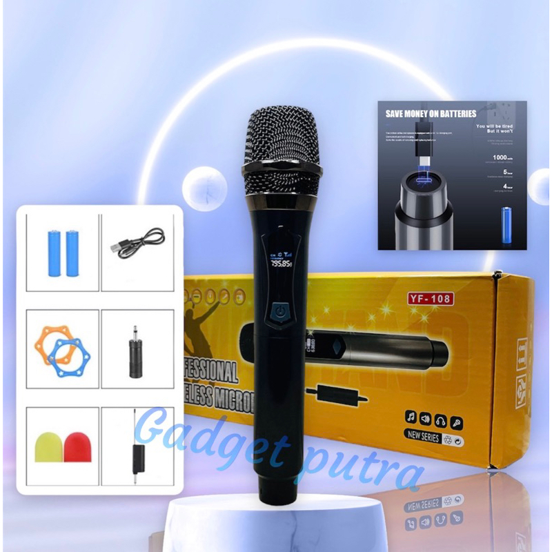 Mic wireless YF-18 with receiver 1mic/ single mic bluetooth multi michrophone wireles pengisian tipe charging