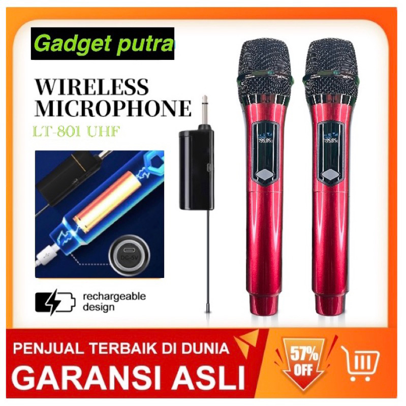 LT-801 Wireless Microphones 1 receiver 2mic wireles ,Dual Handheld Mic With Receiver,Chargeable Mic Nirkabel Mikrofon Po