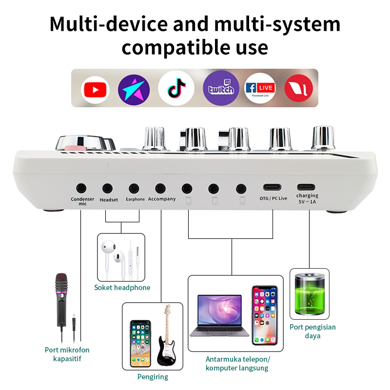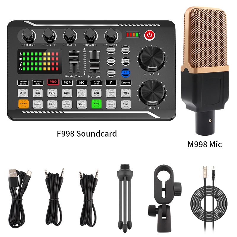 Siborie F998 Soundcard Mixer Bluetooth Live microphone karaoke mixer live broadcast External audio sound card equipment