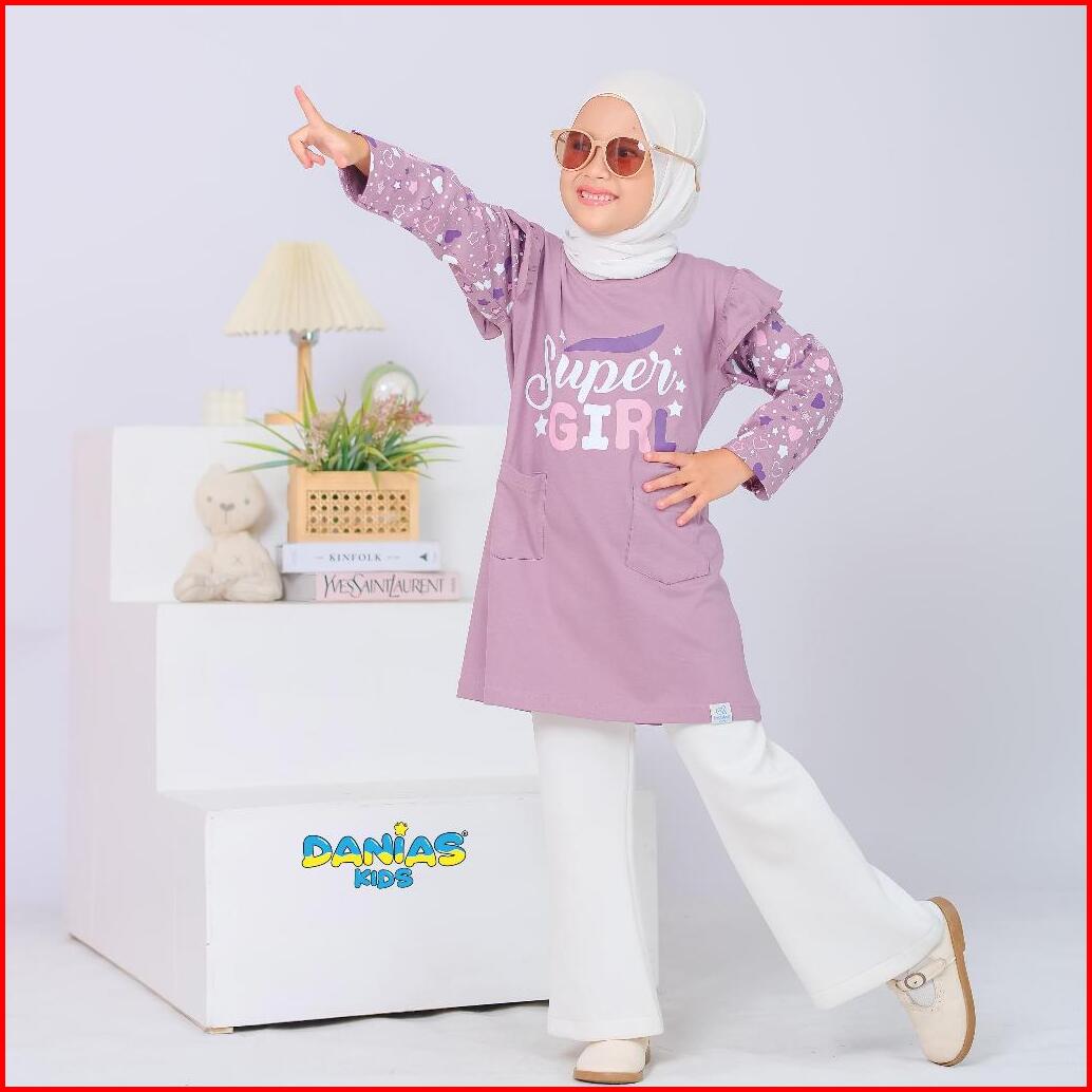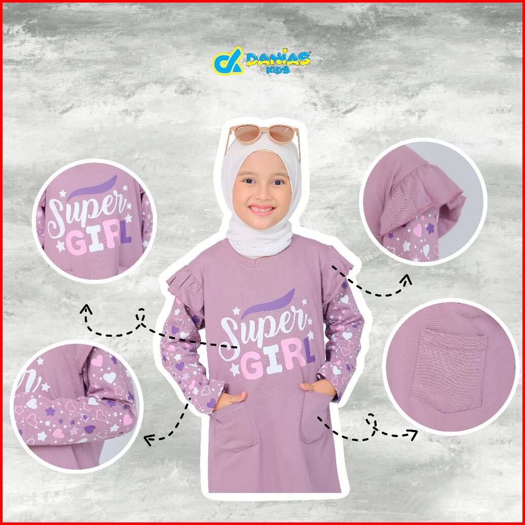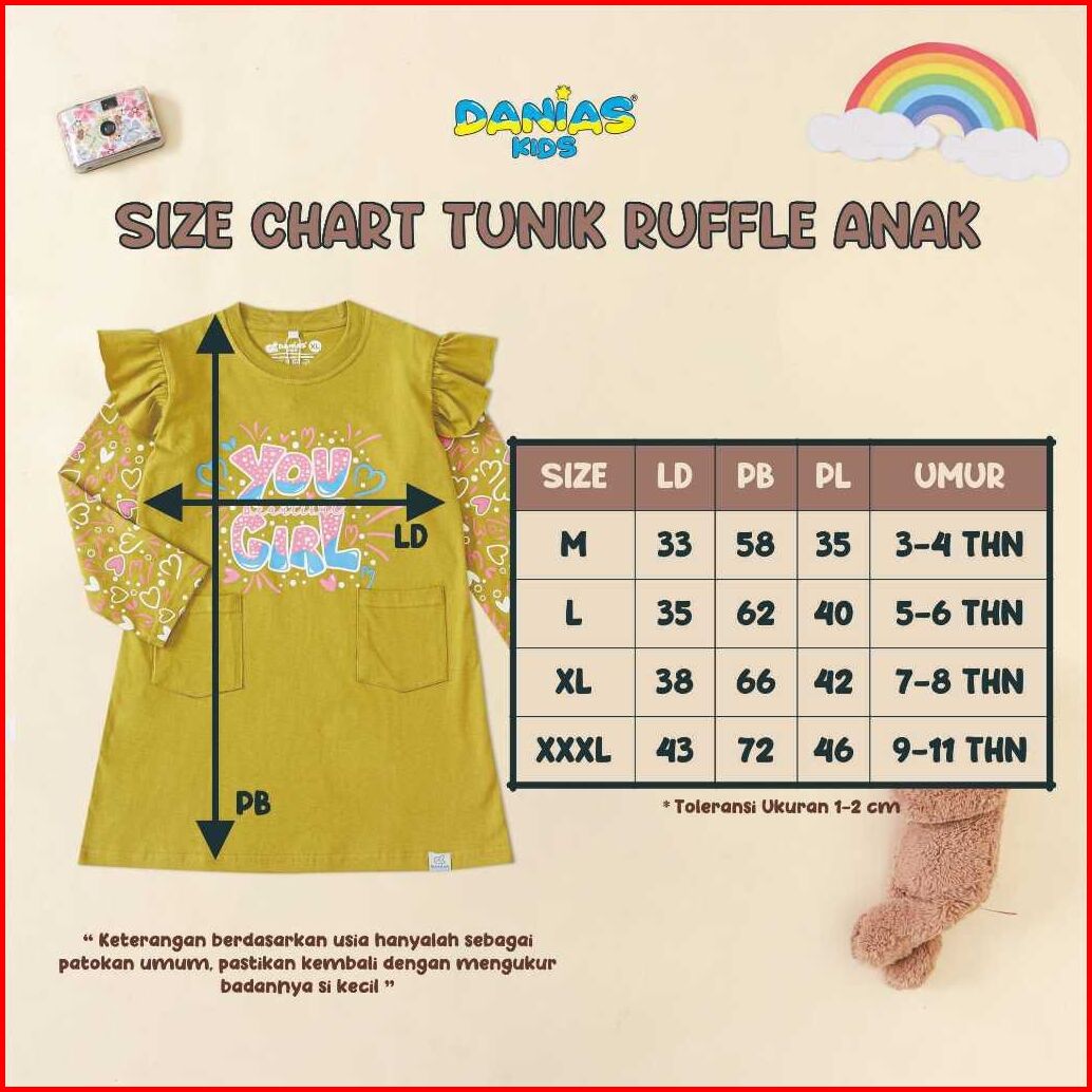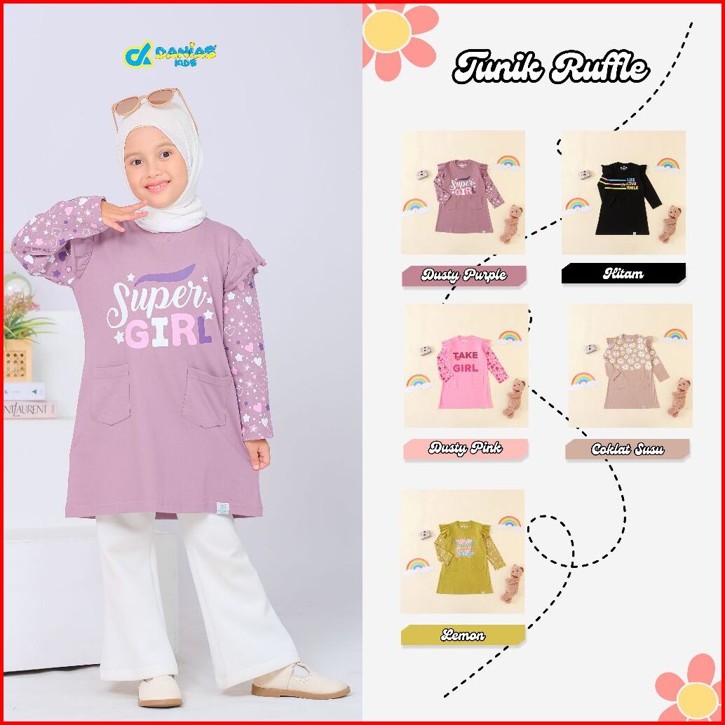 Tunik Ruffle Anak Perempuan Lengan Panjang 3-10 Tahun Bahan Combed 24s Tebal Daniaskids