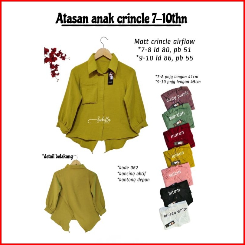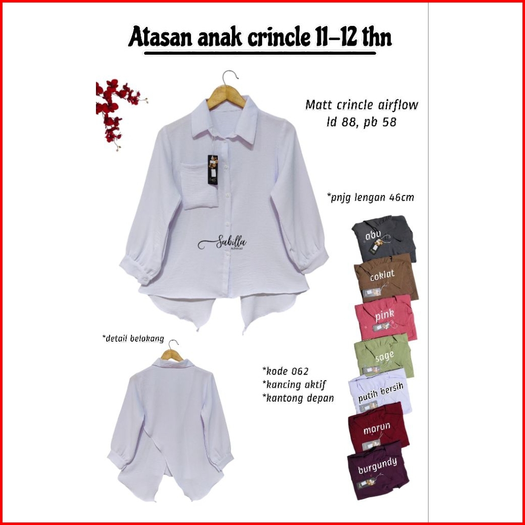 062 Atasan Kemeja Crincle Anak Usia 7-8 9-10 11-12 Tahun