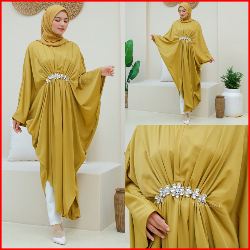 Keanu Diamon Kaftan Gamis Cantik Polos Mewah Premium Allsize Kembaran Dress Panjang Lebaran Acara Kondangan