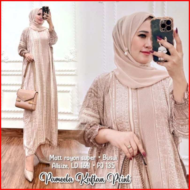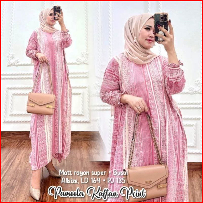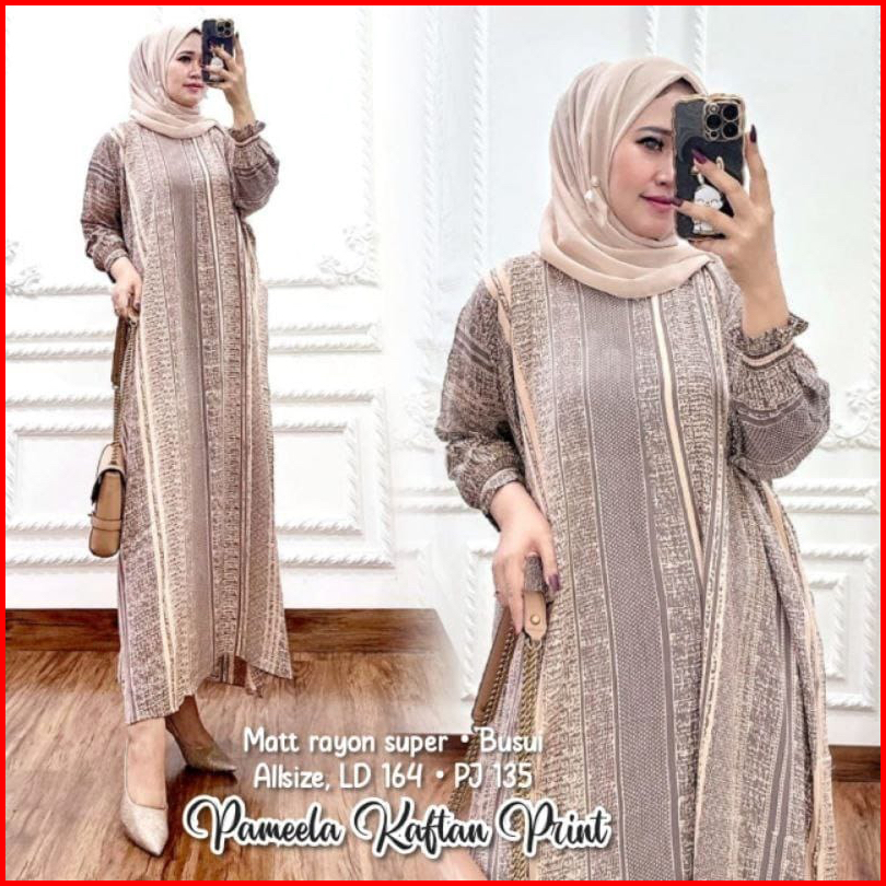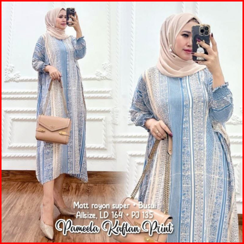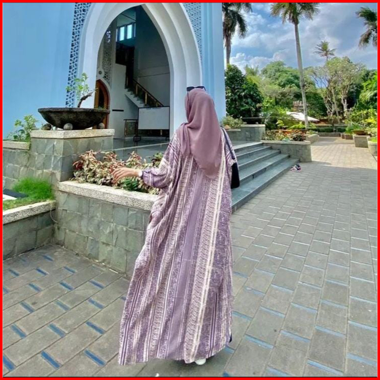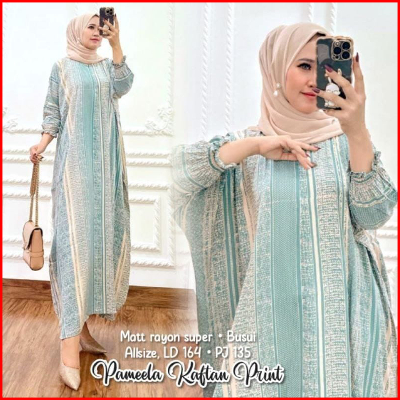 Kaftan Pameela - Kaftan Wanita Jumbo Maksi Soft Color Motif Batik Garis-garis Busui Lengan Panjang Rayon Premium