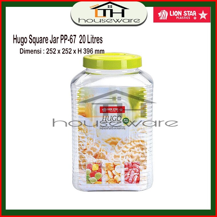 Toples Plastik Tempat Selai Segi 20 Liter Hugo Square Jar 217 Lion Star Pp-67 Wadah Keler Kerupuk