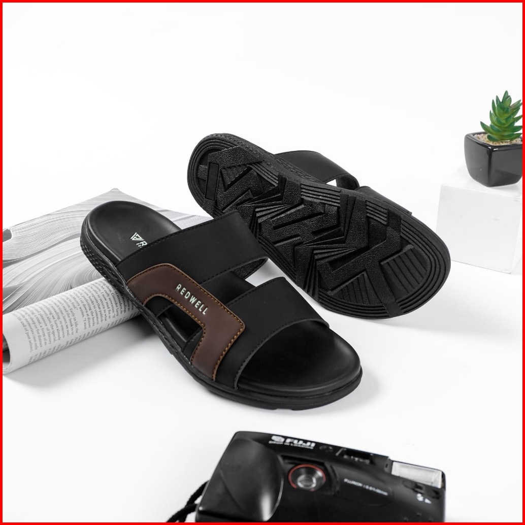 Sandal Kulit Pria Redwell Brown Tan Kulit Sapi Asli Original Handmade Bandung Kasual Santai