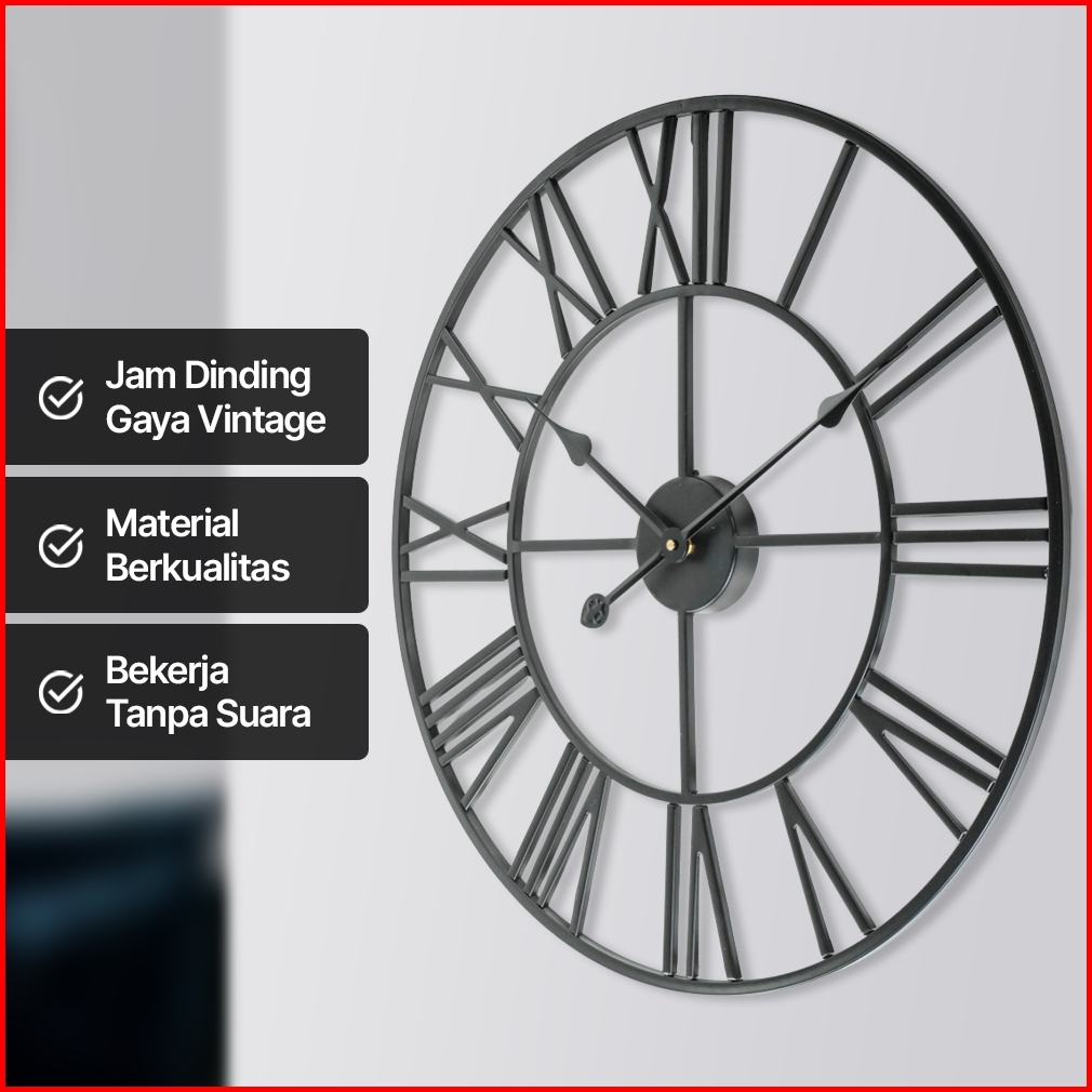 Jam Dinding Bulat Quartz Creative Model Vintage 60 Cm - H68