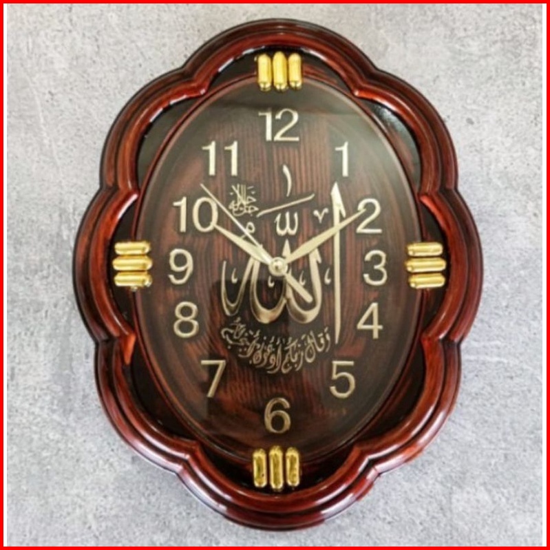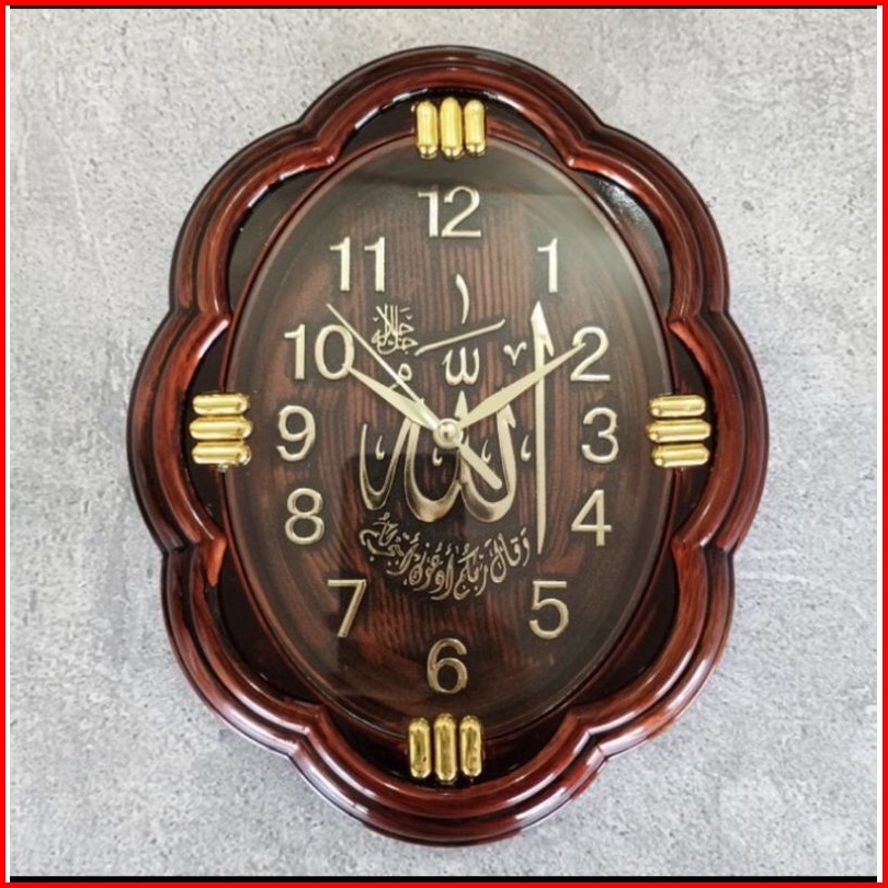 Jam Dinding Nikko Nk-8196 Kaligrafi Allah Coklat Kayu Wall Clock Minimalis
