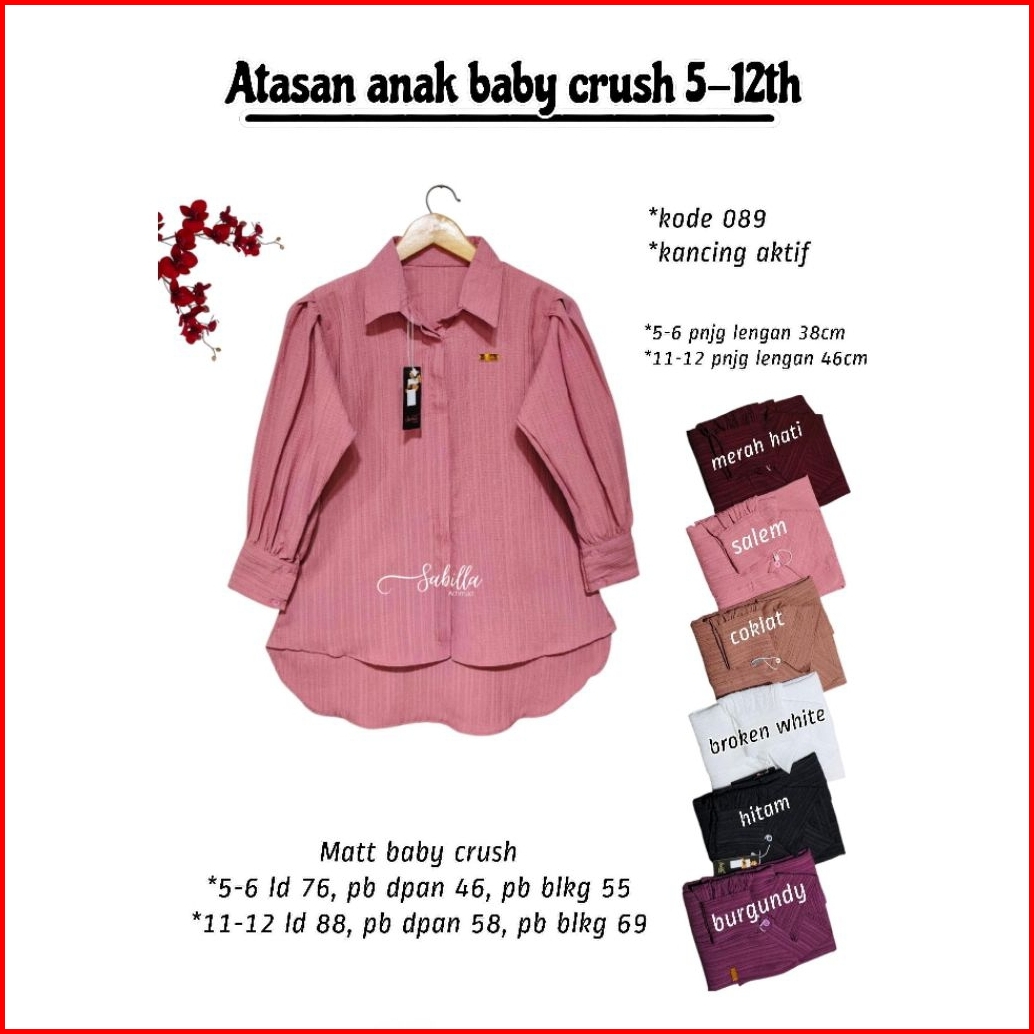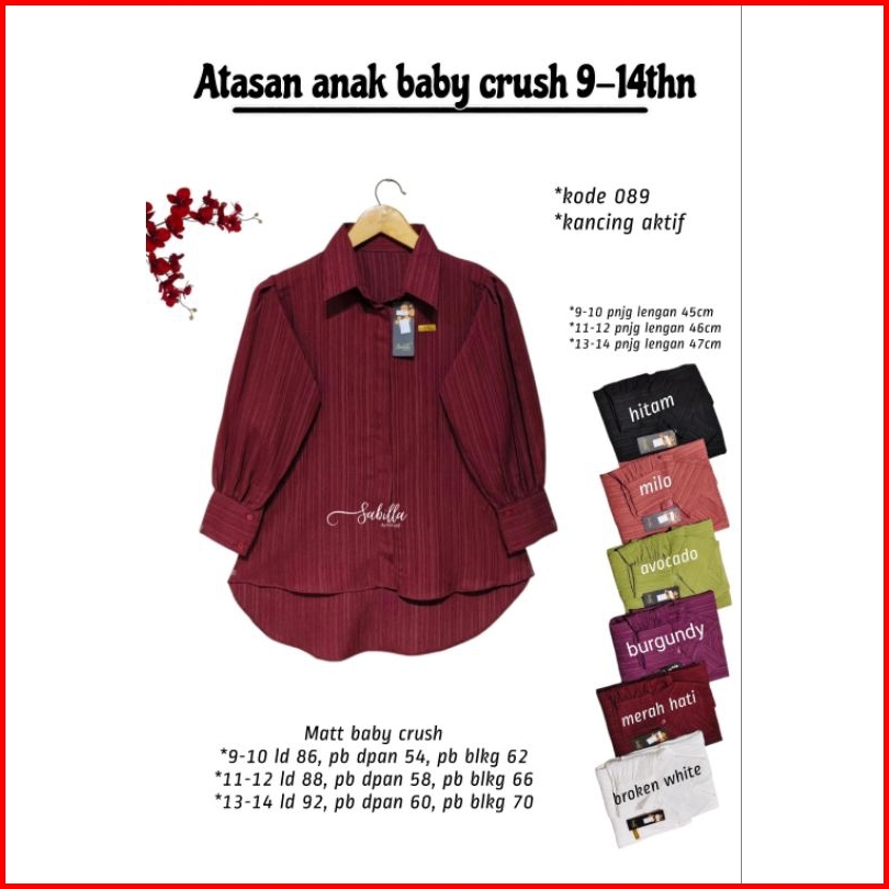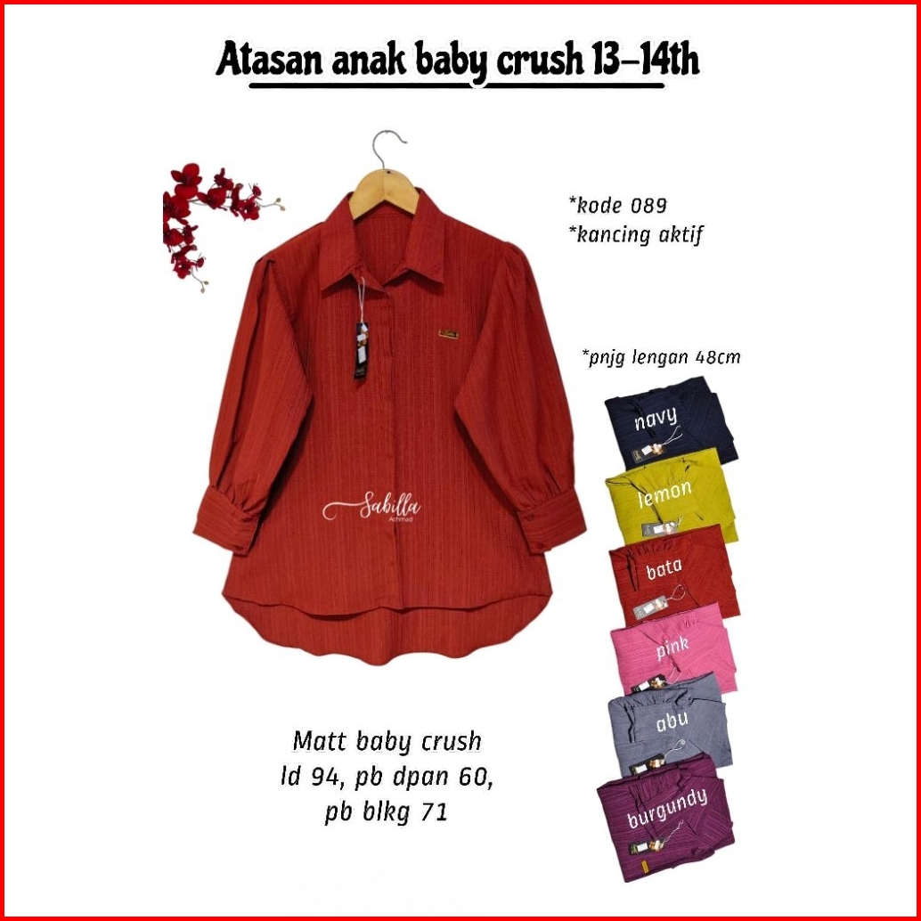 089 Atasan Kemeja Baby Crush Anak 5-6 7-8 9-10 11-12 13-14 Tahun