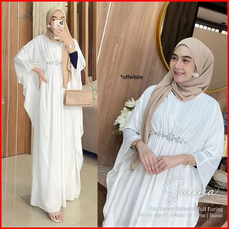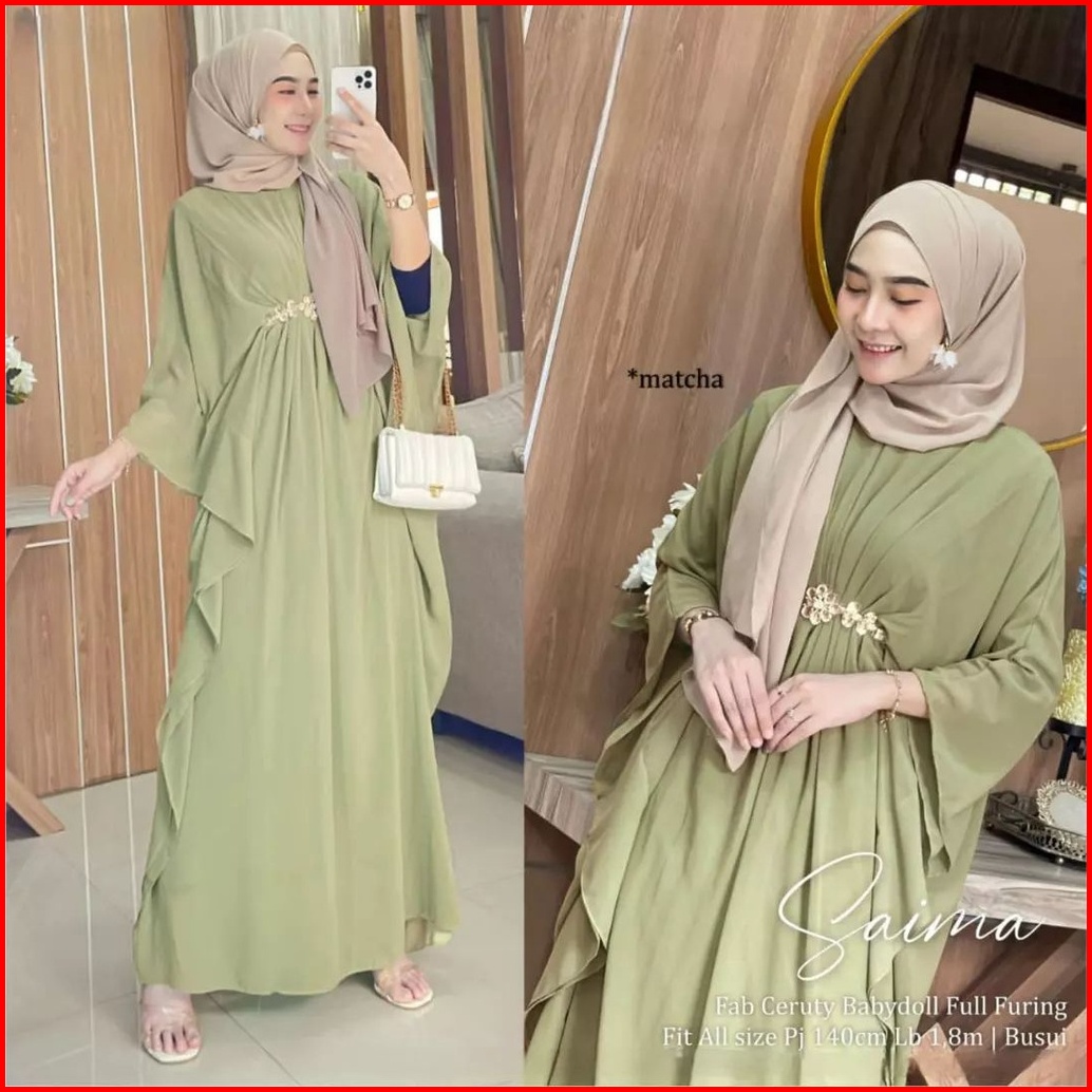 Saima Kaftan Baju Kaftan Muslim Cewek Terkini 2023 Bahan Ceruty Babydoll Fashion Wanita Muslimah Ef