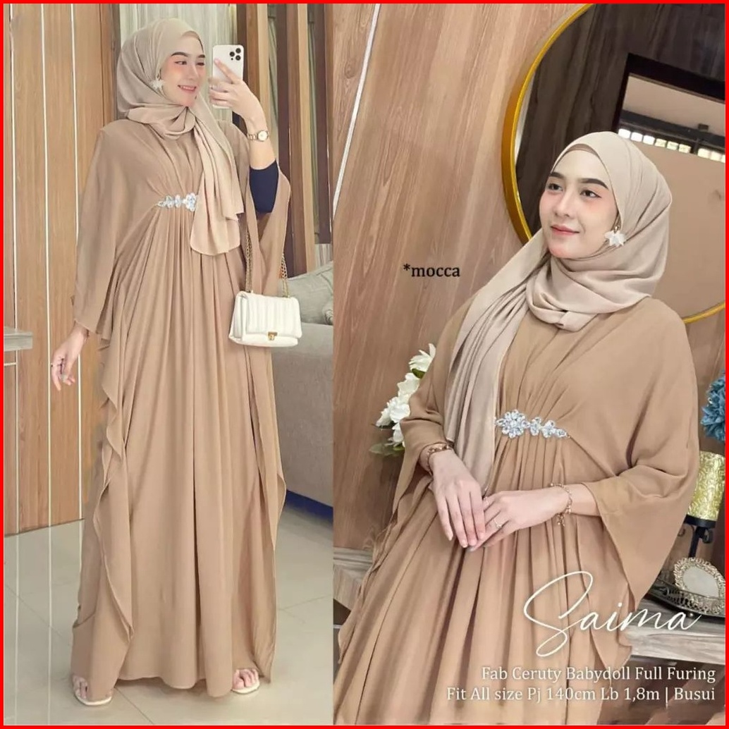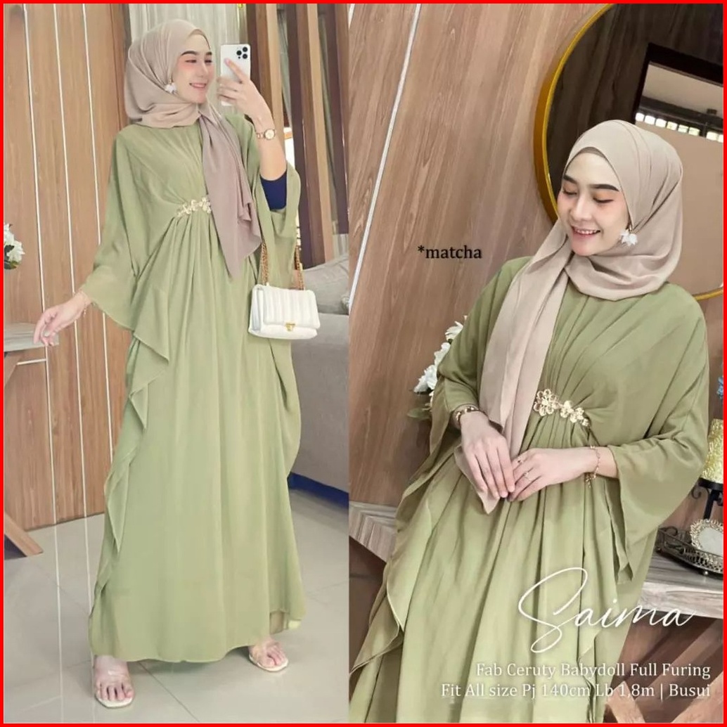 Saima Kaftan Baju Kaftan Wanita Terlaris Matt Ceruty Babydoll Dress Wanita Aksen Renda Full Puring Ef