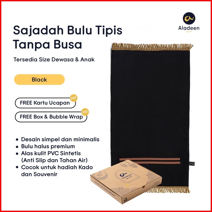 Sajadah Aladeen Bulu Tipis Tanpa Busa - Hitam Size Dewasa Free Kartu Ucapan