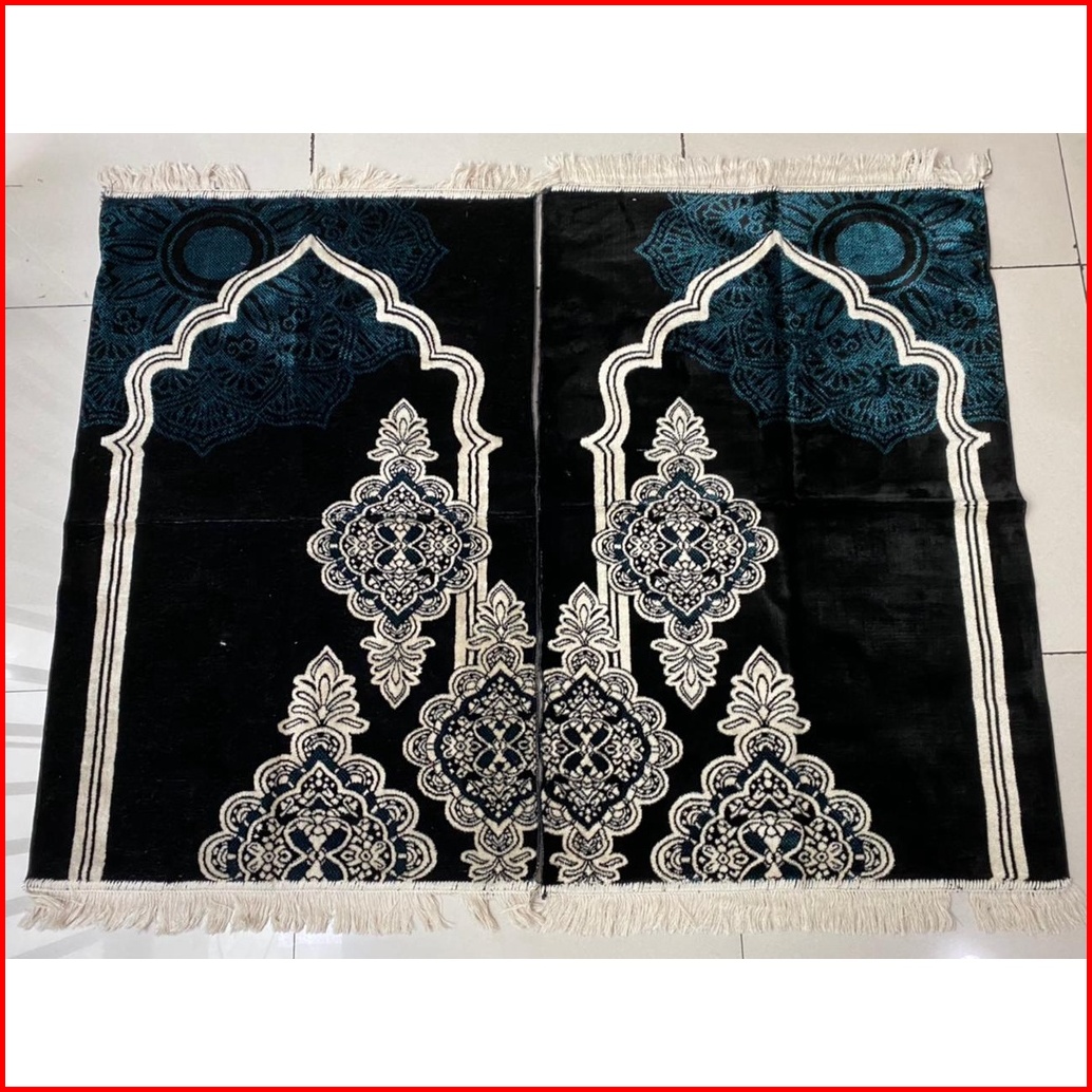 Sajadah Model Couple Sepasang Turki Saudi Premium Tebal Beludru Hitam Besar 70x110 Cm