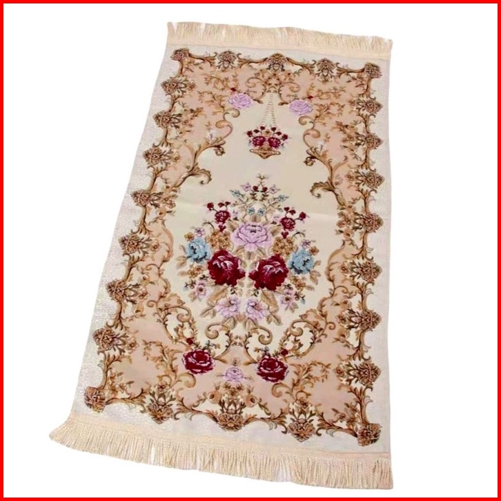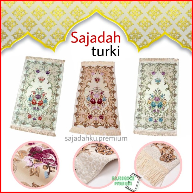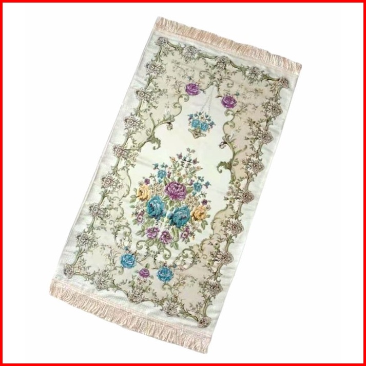 Sajadah Turki Turkey Bahan Satin Premium Bordir Import Motif Bunga Fashion Muslim 70x120cm