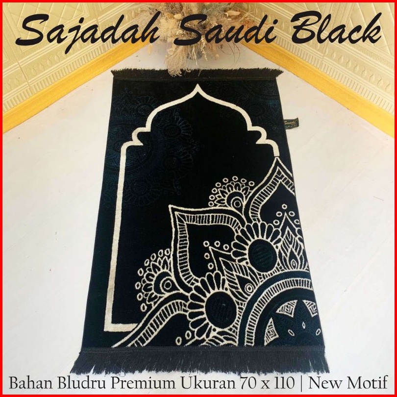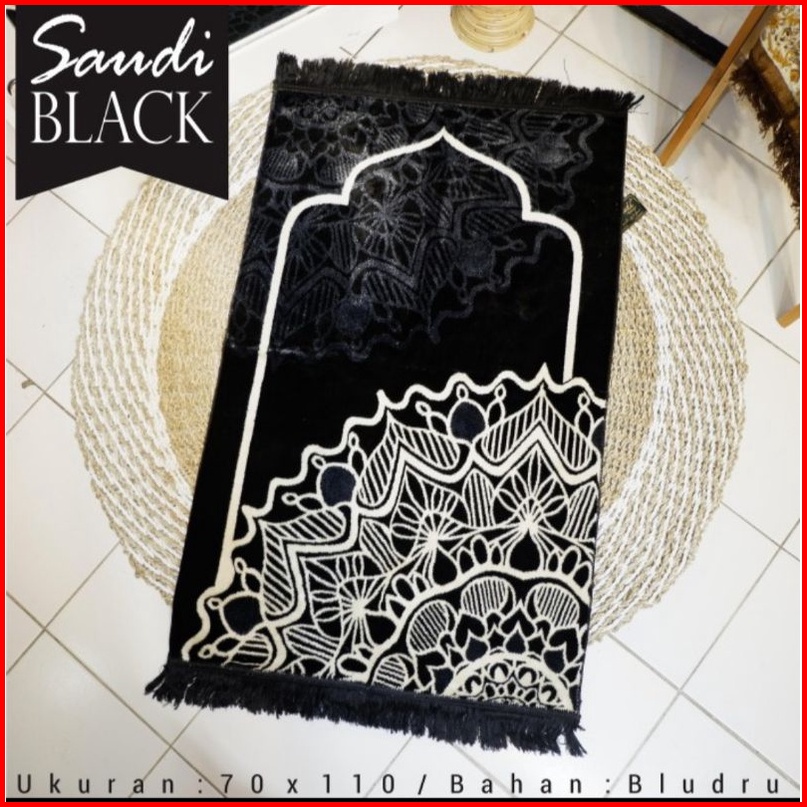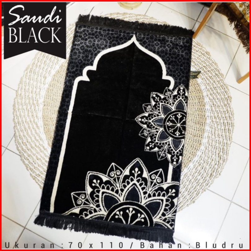 Sajadah Tebal Turki Hitam Premium Saudy Black 70x110