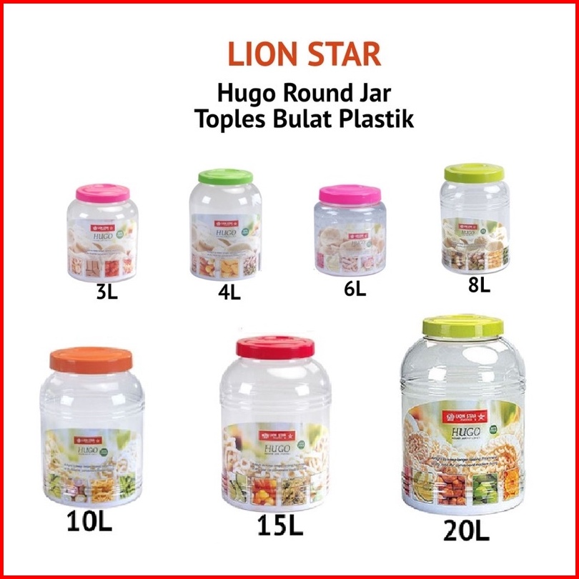 Toples Hugo Round Jar 3 4 6 8 10 Liter Toples Bulat Lion Star Toples Serbaguna Tempat Kerupuk
