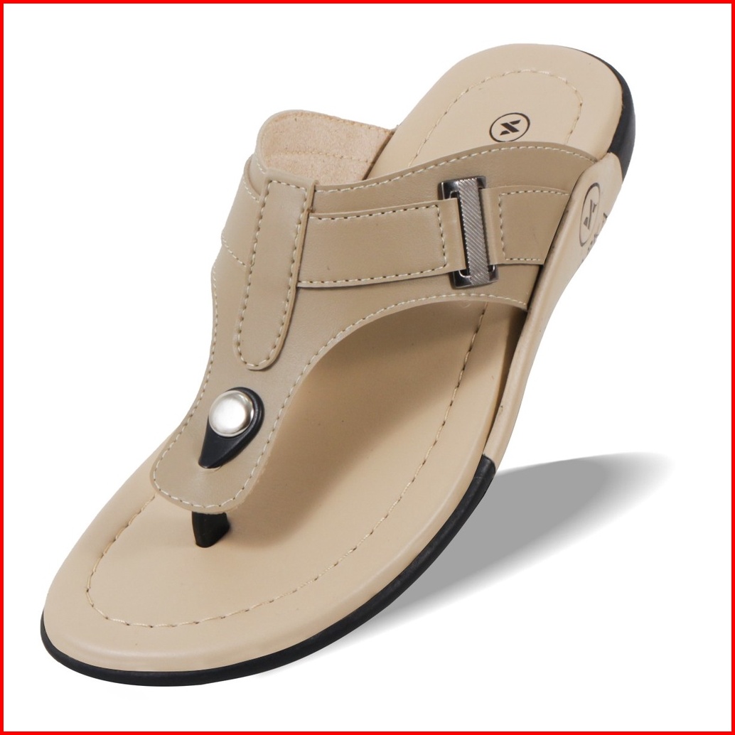 Sandal Pria Terbaru V 7034 Brand Varka Sandal Jepit Kulit Sintetis Santai Jalan-jalan Berkualitas Warna Krem