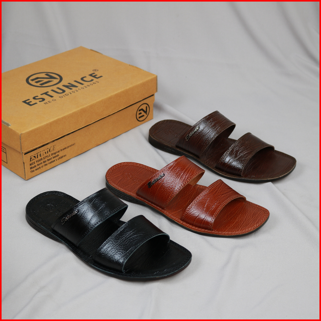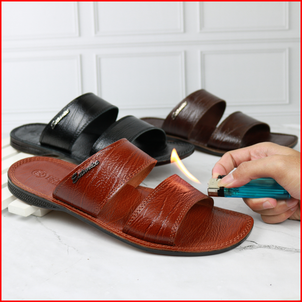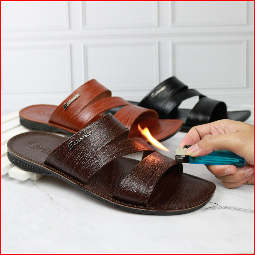 Sandal Kulit Pria Original Premium Sendal Slop Kulit Sapi Asli Motif Kayu