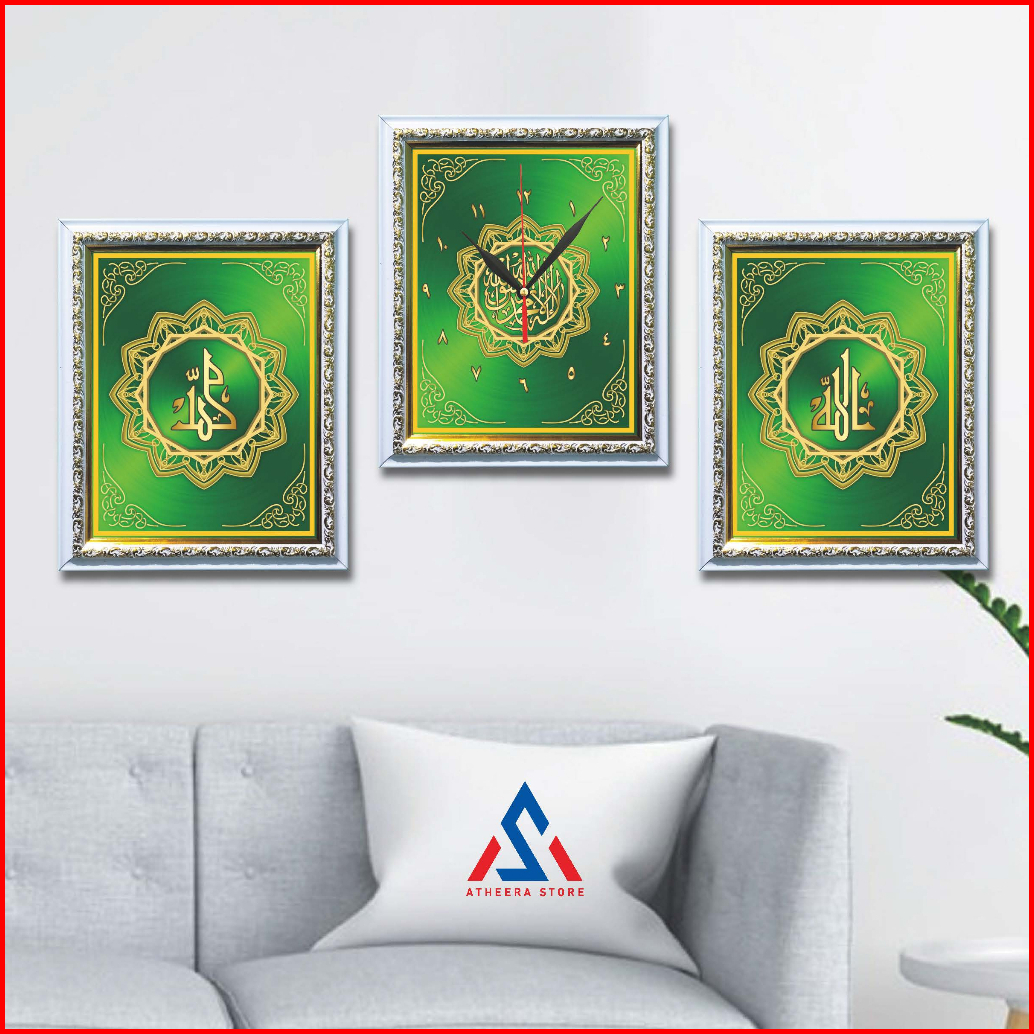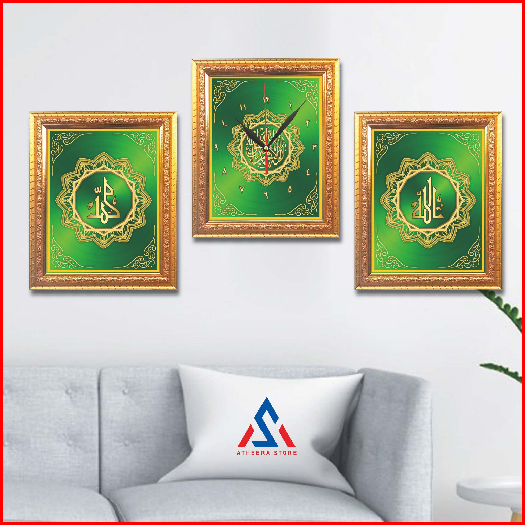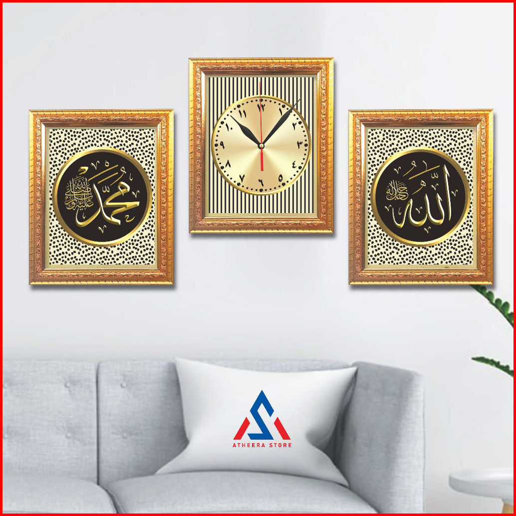 Jam Dinding Satu Set Bingkai Kaligrafi Mewah