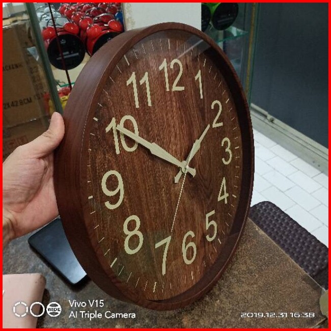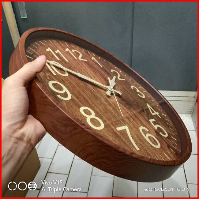 Jam Dinding Besar Vintage Natural Wooden Kayu Wood Klasik Classic Minmalis