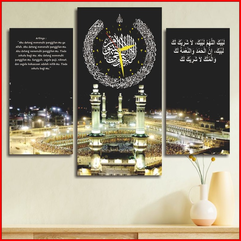 Jam Dinding Kaligrafi Mewah 3in1 Tampilan Elegan Menawan Jam Dinding Ka Bah Mekah 3in1