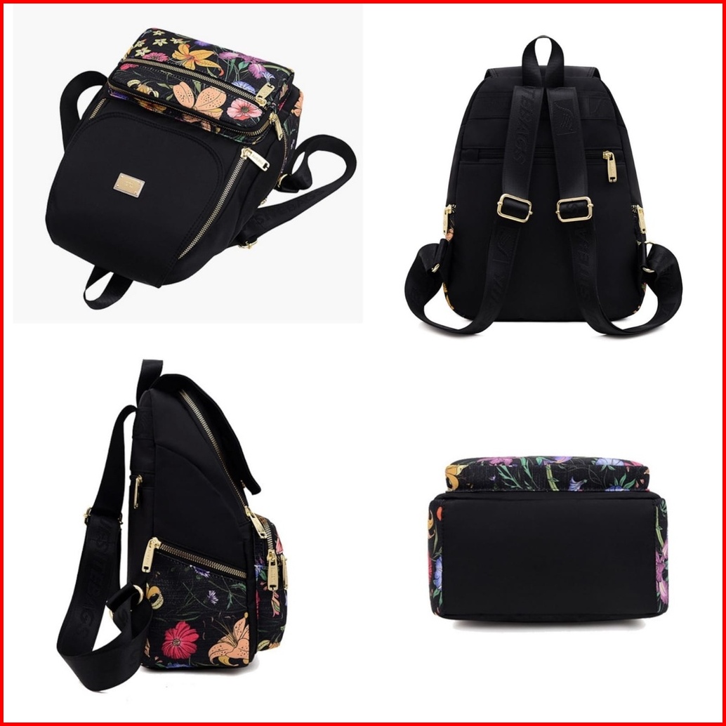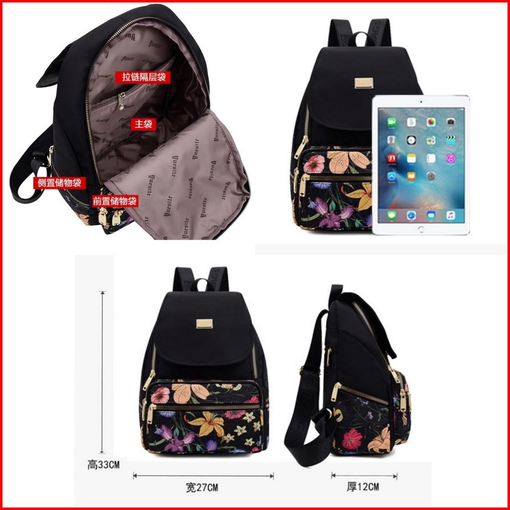 Tas Ransel Wanita Korea 3 Resleting Anti Air Kamine Ta571b5 Motif Bunga Backpack Gendong Cewek Korea Punggung Sekolah Ku