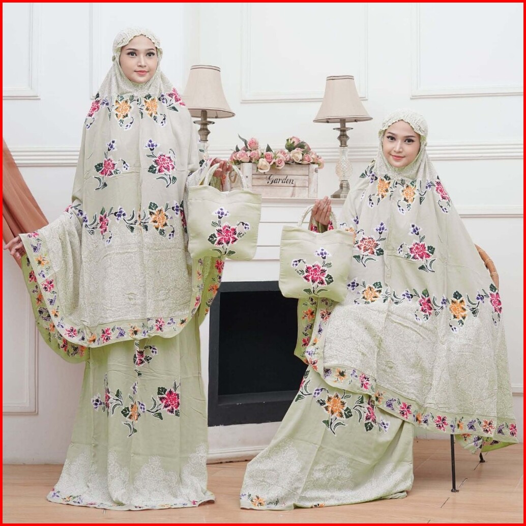 Mukena Batik Cap Pekalongan Encim Bahan Rayon Sogan