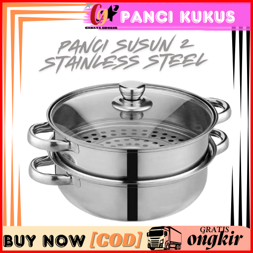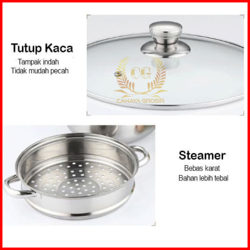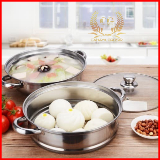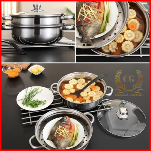 Cg - Panci Kukus Set Stainless Steel Panci Sup Steamer Ikan Bakpao Siomay 2 Susun 28cm Tebal
