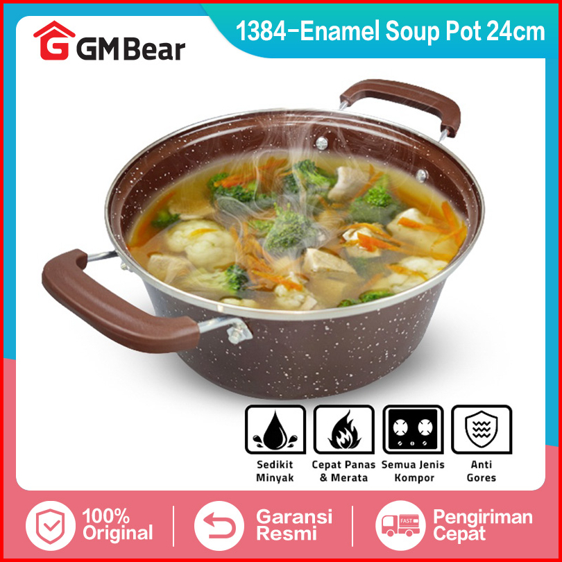 Gm Bear Panci Sop Enamel 24cm 1384 - Panci Soup Wok Pan Enamel