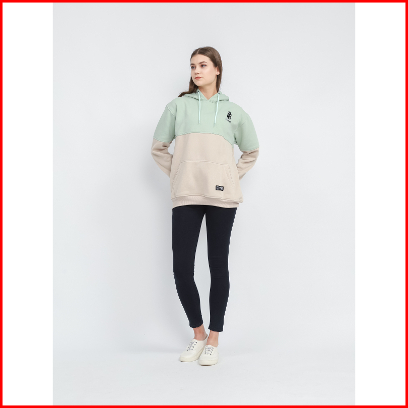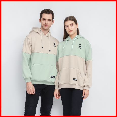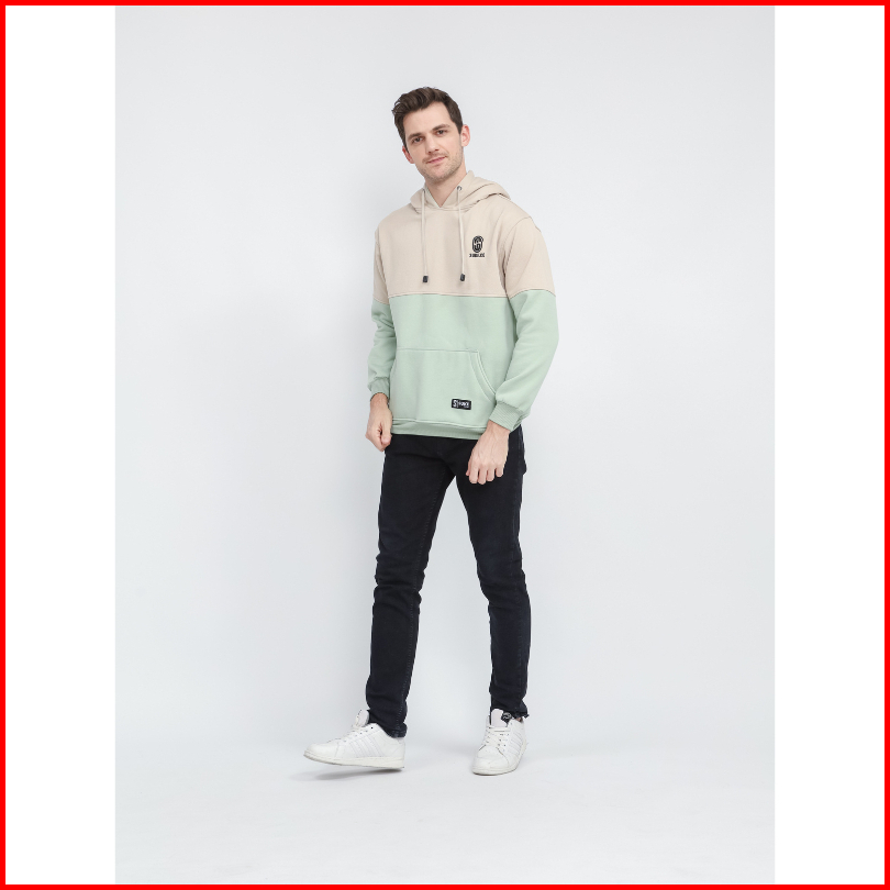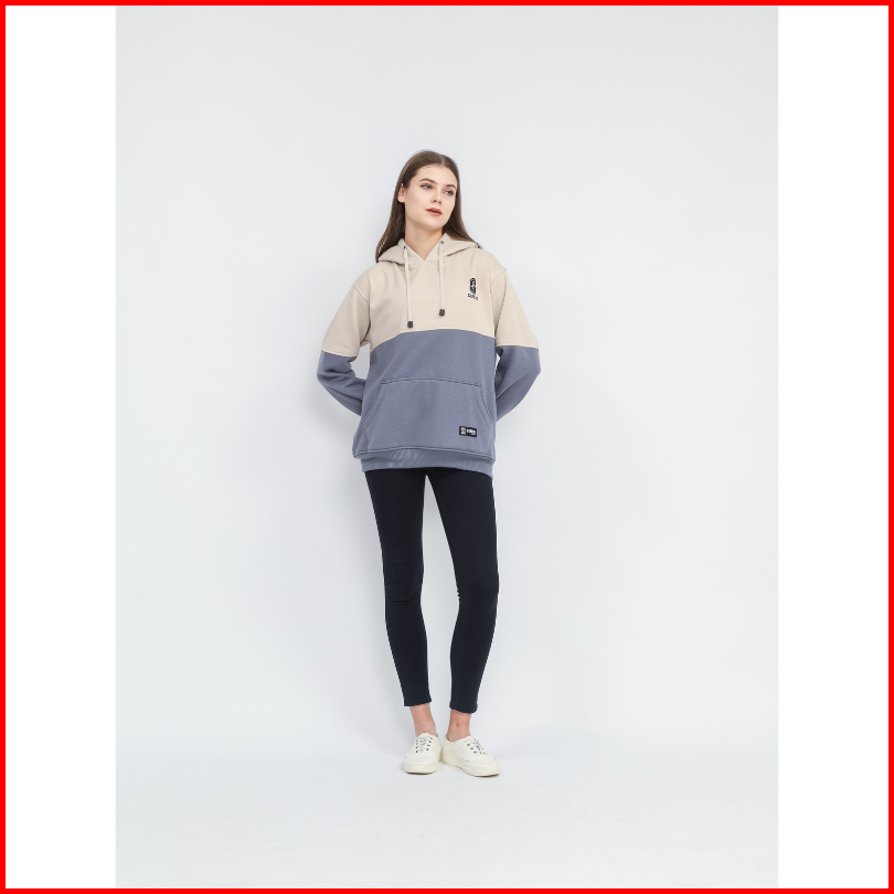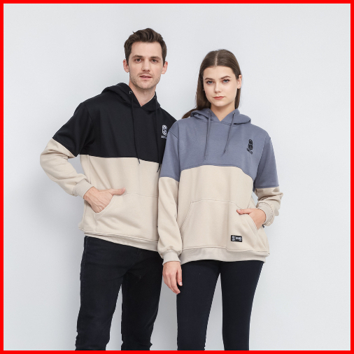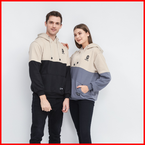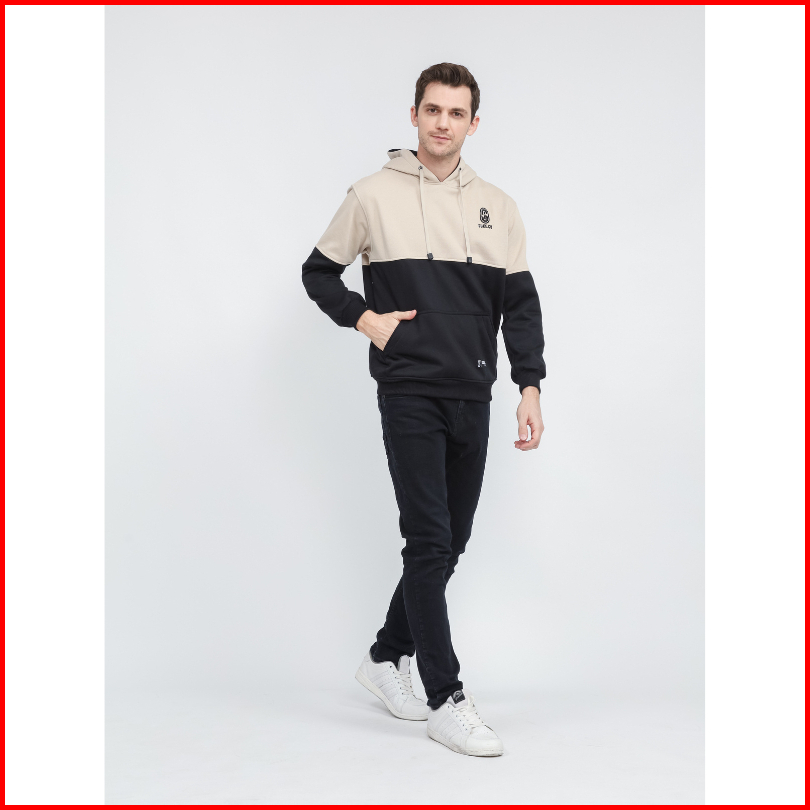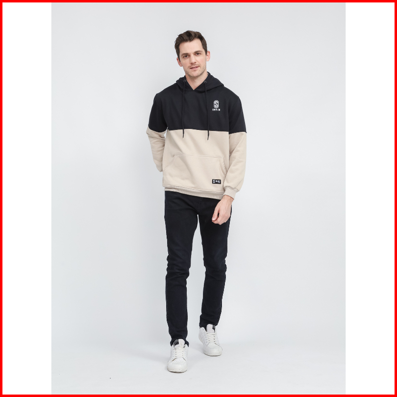 Sweater Hoodie Pria Wanita Motif Combi Logo Bordir Beige Hitam Premium