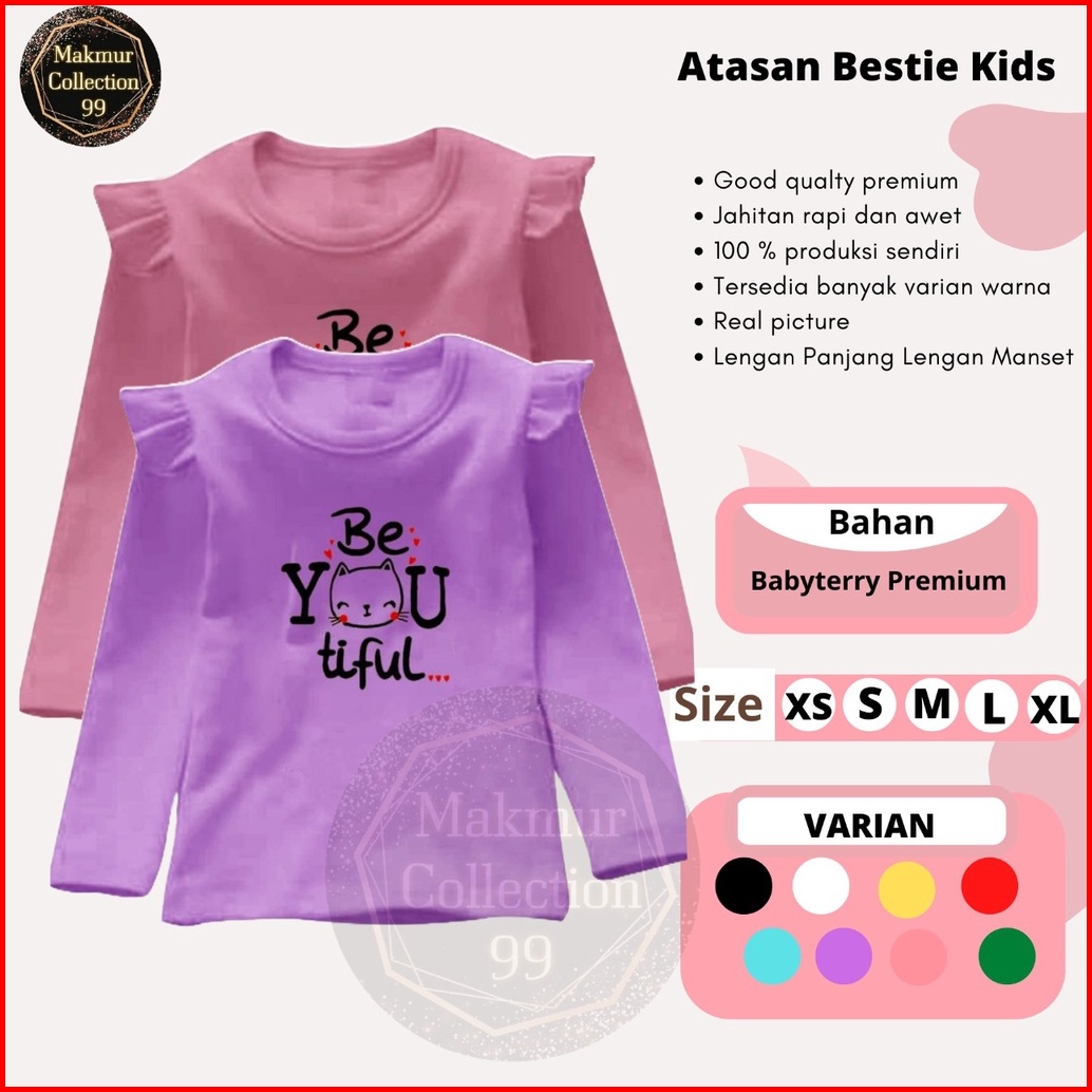 Atasan Kaos Anak Perempuan Lengan Panjang 1-14tahun Model Kerutan Atasan Bestie Kids Matt Babyterry Good Quality