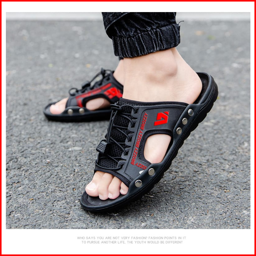 Brozzy For You Sandal Pria B09 Slip On Sandal Gunung Outdoor Pria Kekinian Gaya Korea Kanvas Tahan Air Gratis Ongkir Ong