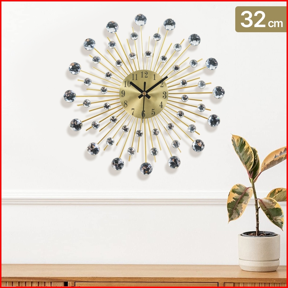 Jam Dinding Luxury Diamond Retro Jam Besar Diamond 3d Golden Geometric Jam Besar Diamond Vintage