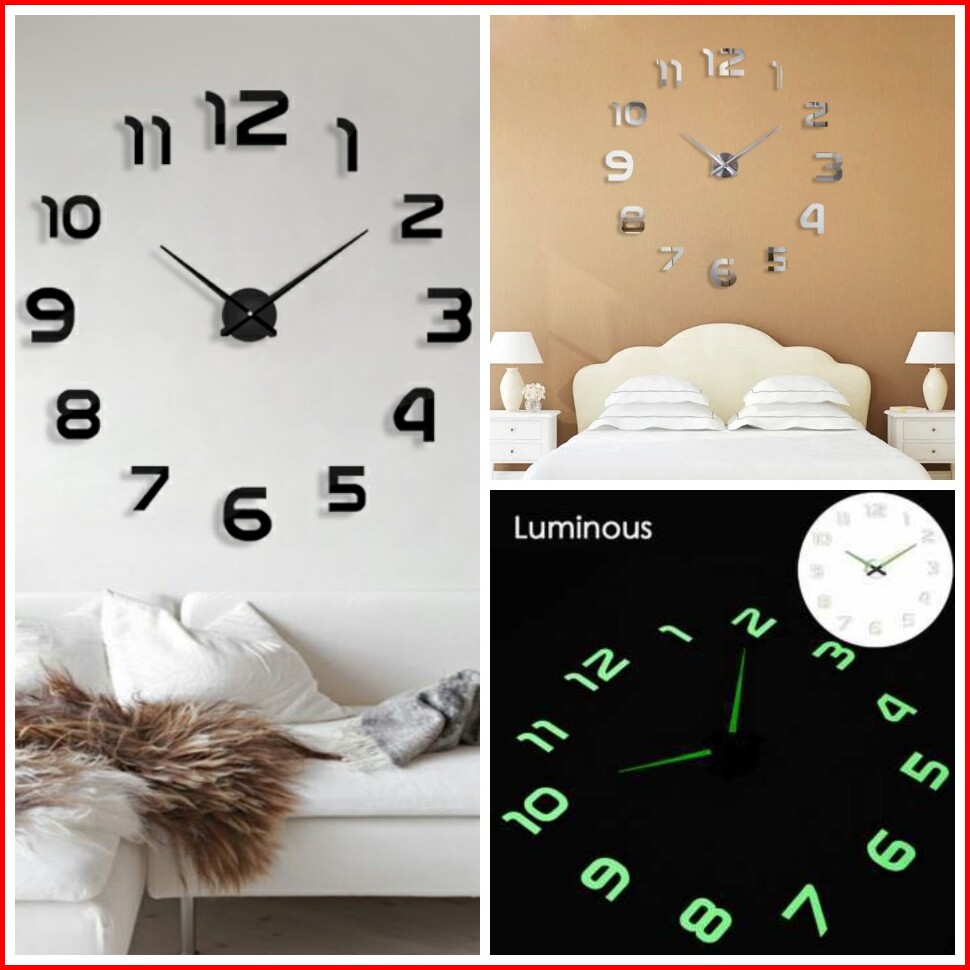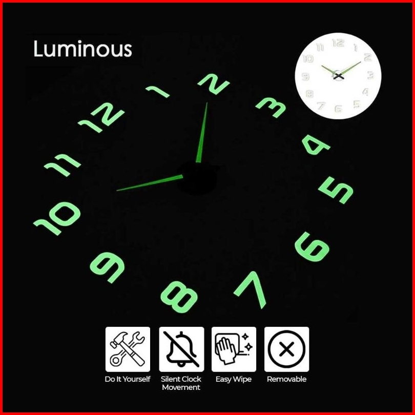 Taffhome Jam Dinding Jumbo 3d Model Angka Diameter 80-130cm Wall Clock Glow Diy 105