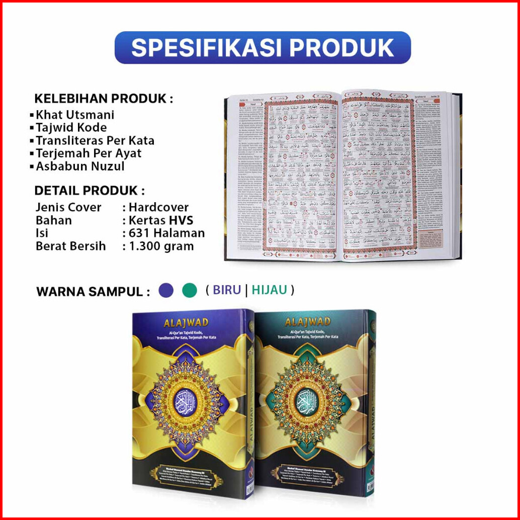 Al Quran Besar Ukuran A4 Alquran Tajwid Kode Al Ajwad Transliterasi Per Kata Terjemah Per Kata Hvs Cipta Bagus Segara -