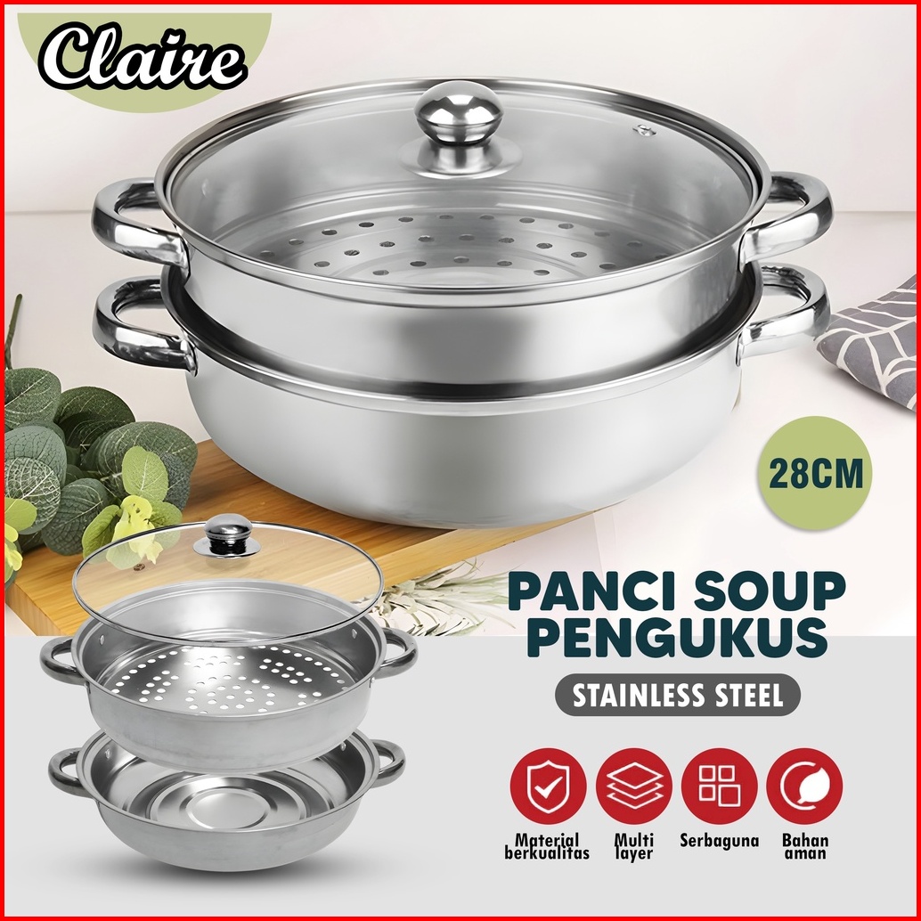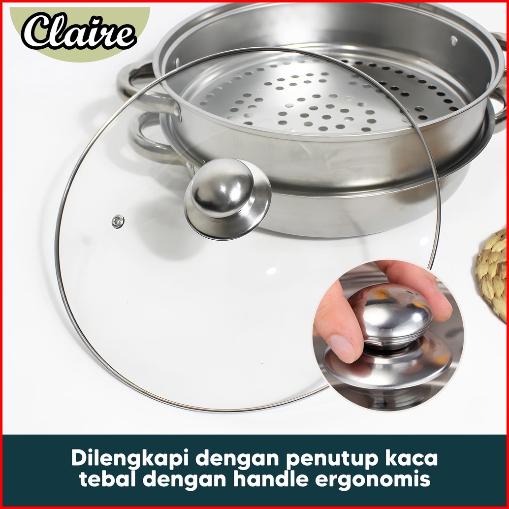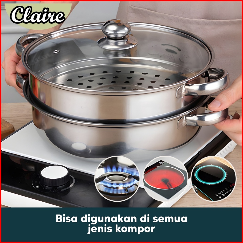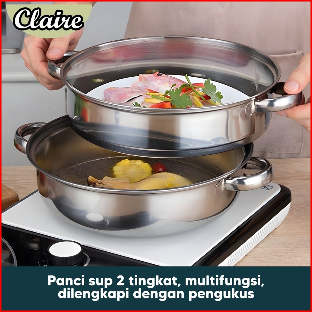 Steamer Stainless Steel 2 Tingkat Panci Kukus 2 Tingkat Panci Kukus Anti Karat Food Grade Panci Kukus Bakpao Bakso Singk