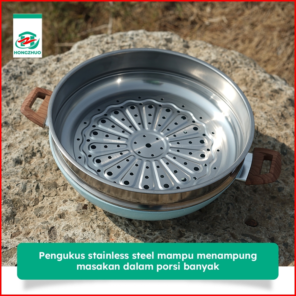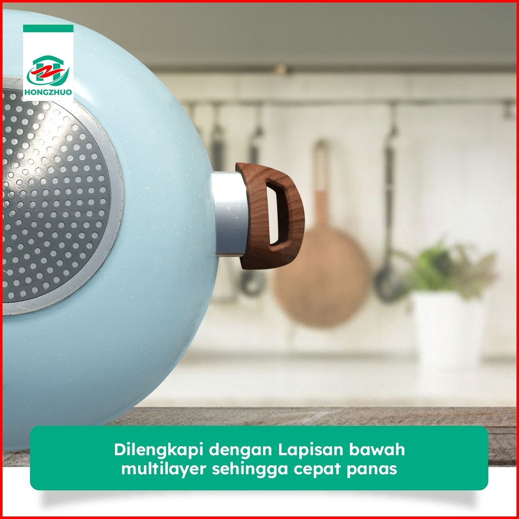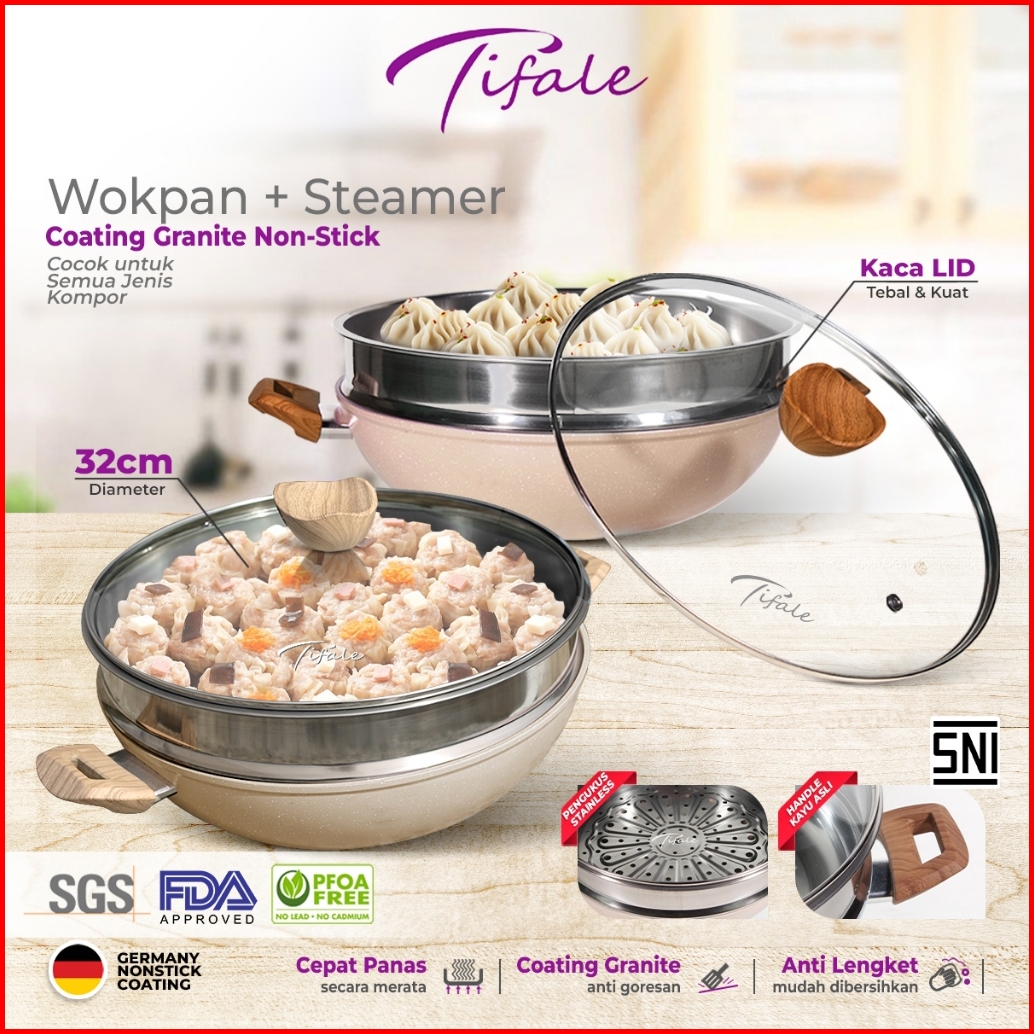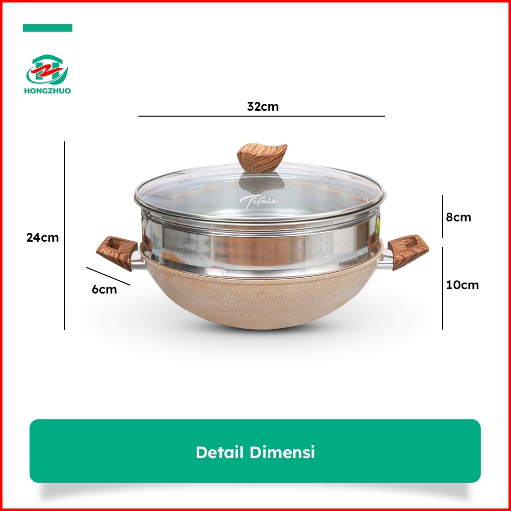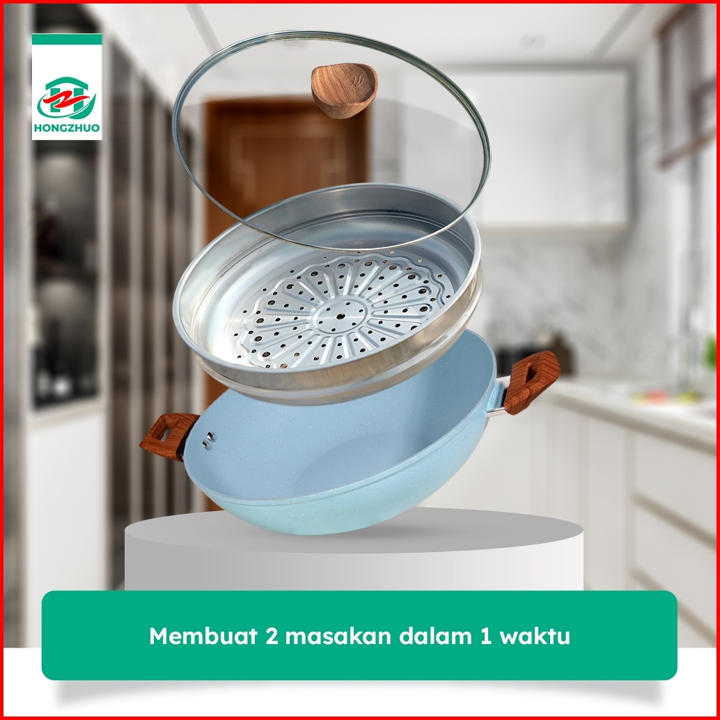 Tifale By Hongzhuo 2in1 Wokpan 32cm Glass Lid Granite Steamer Non Stick Alat Masak Wok Dengan Panci Kukus Granite Anti L