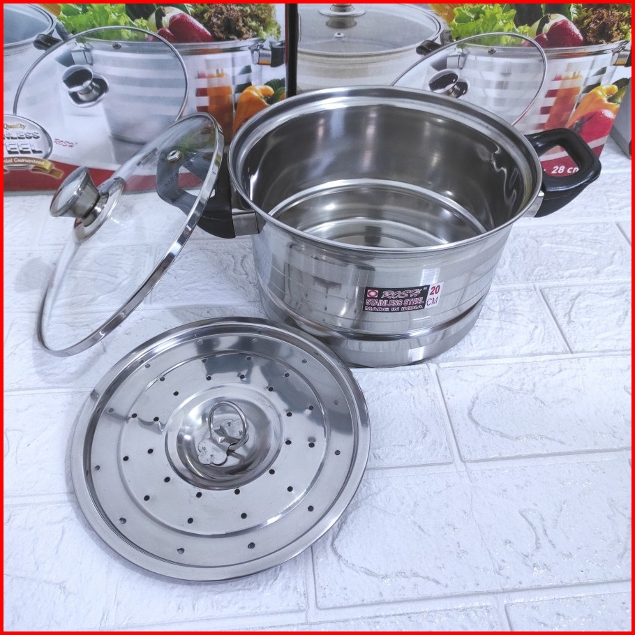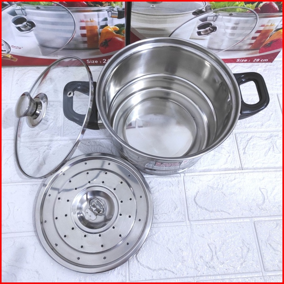 Panci Rosh Sauce Pot Steamer Kukus Kukusan Stainless 20 22 24 26 28 Cm