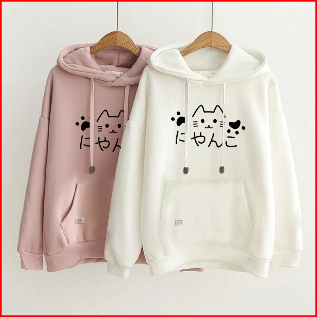 Parisdivarious Sweater Hoodie Jemper Kucing Lucu Bahan Fleece Size S - Xxl Pria Wanita
