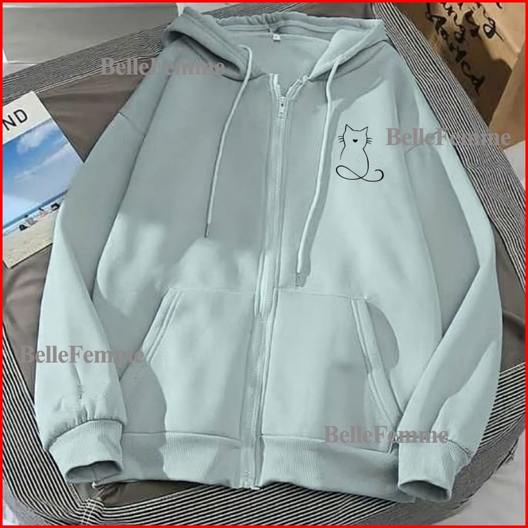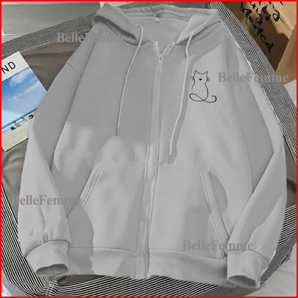 Hoodie Zipper Sweater Garis Kucing Resleting Pria Wanita Size L Xl Xxl 3xl 4xl Bigsize Zipper Wanita Kekinian Oversize B