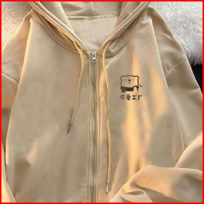 Parisdivarious Hoodie Zipper Cute Bear Bordir Size S - Xxl Pria Wanita