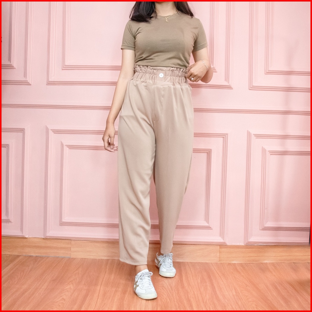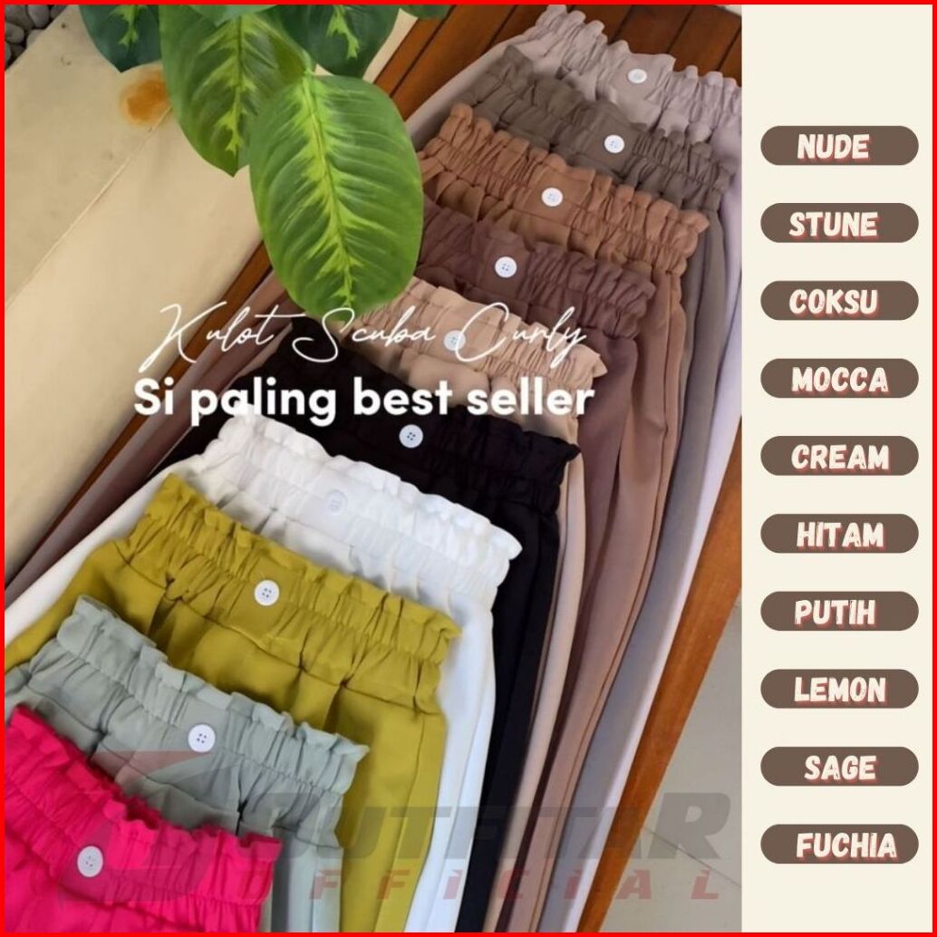 Celana Wanita Kulot Currly Scuba Highwaist Full Karet Kancing Korean Style Wde Leg Pants