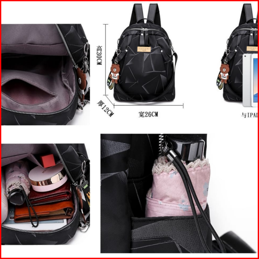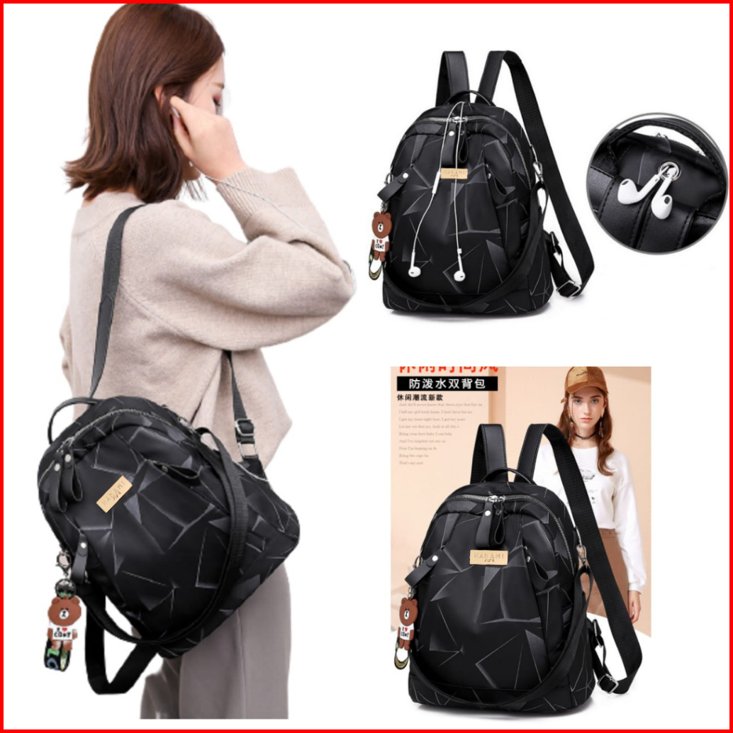 Hanami Tas Ransel Wanita Korea Anti Air Hitam Ellesma Ta395b5 Backpack Sekolah Kerja Besar Batam Ori