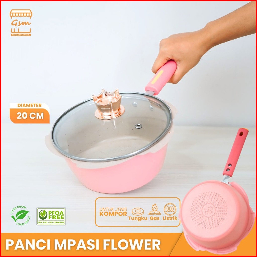 Gsm Panci Flower Sakura Set Panci Dan Tutup Kaca Ukuran 20cm Panci Multifungsi M-111-2aa