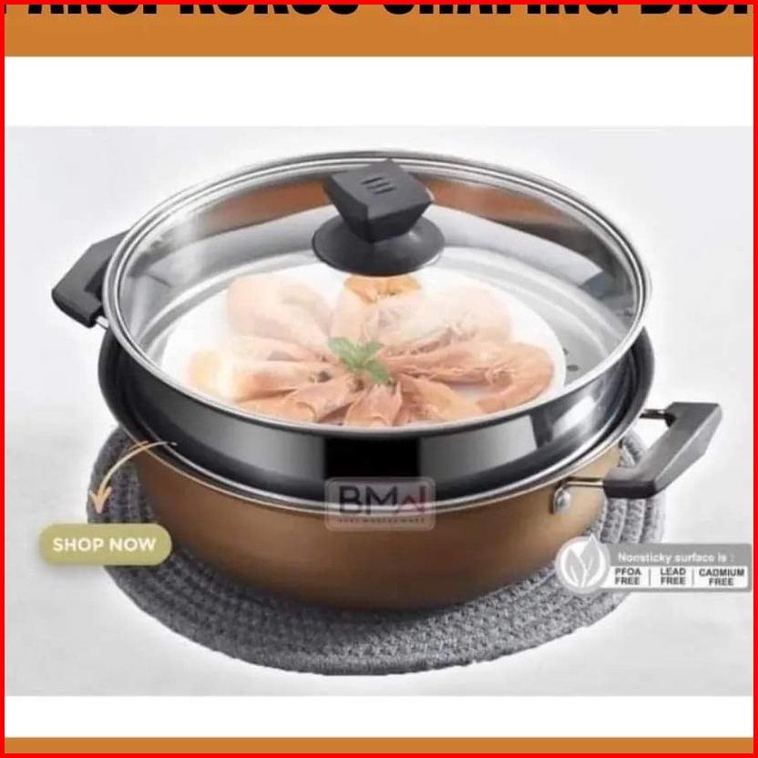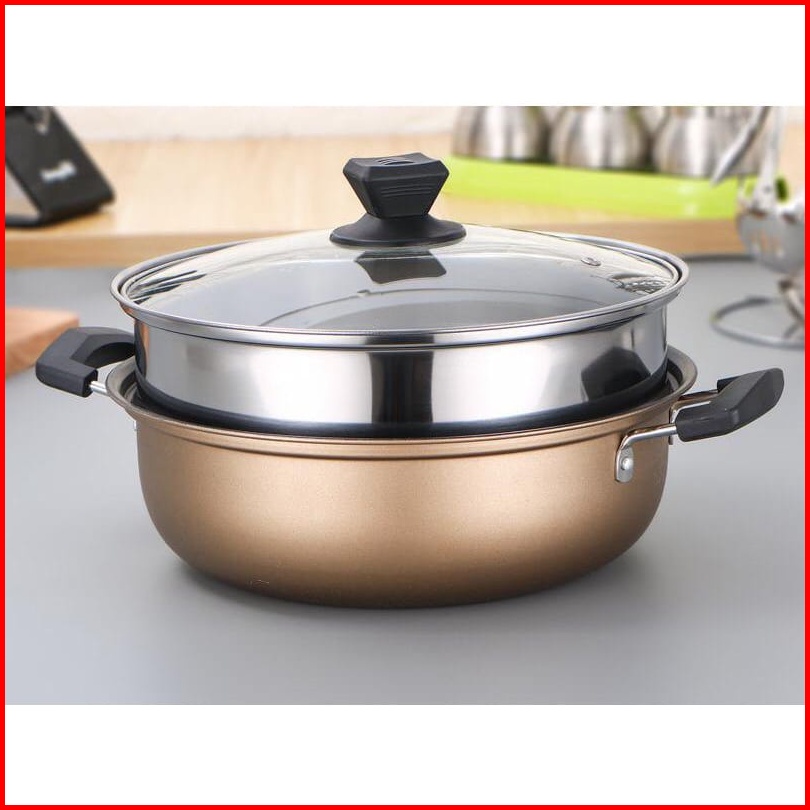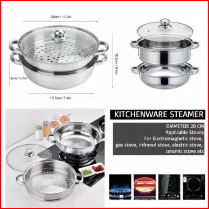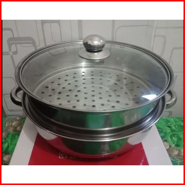 Panci Kukus 2 Susun Steamer Steinless Tutup Kaca Panci Somay Chafing Dish