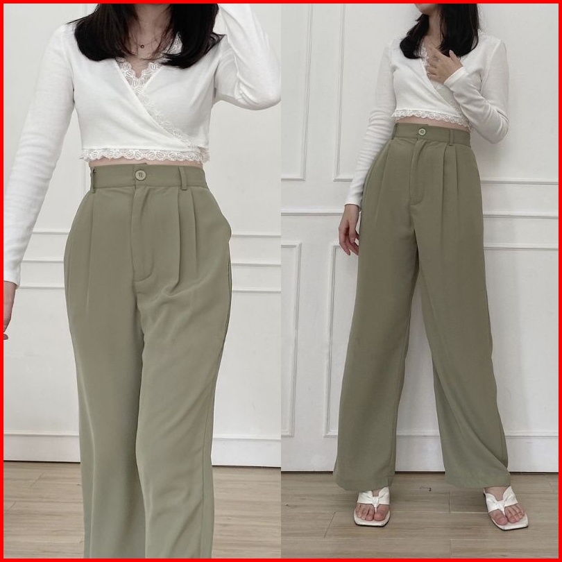 Premium Celana Kulot Wanita Anti Kusut Loose Pants Trousers Celana Kantor Formal Casual