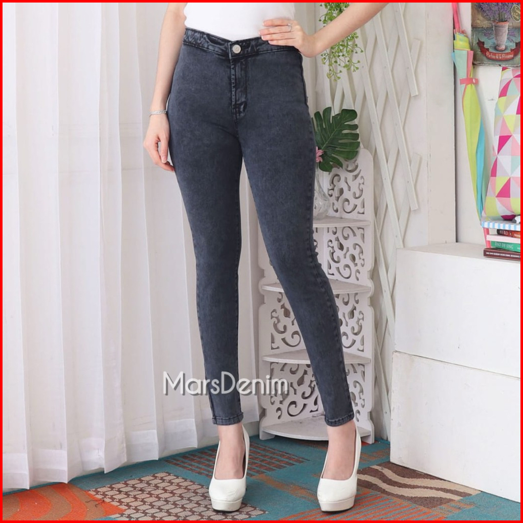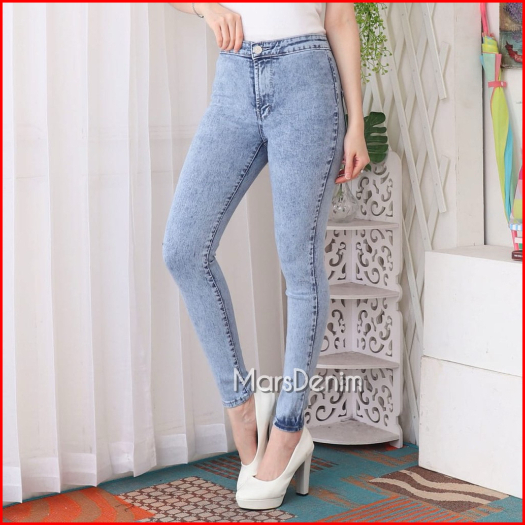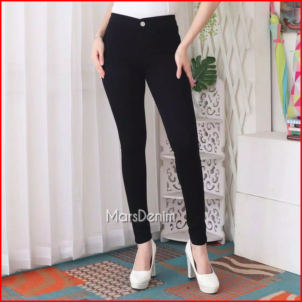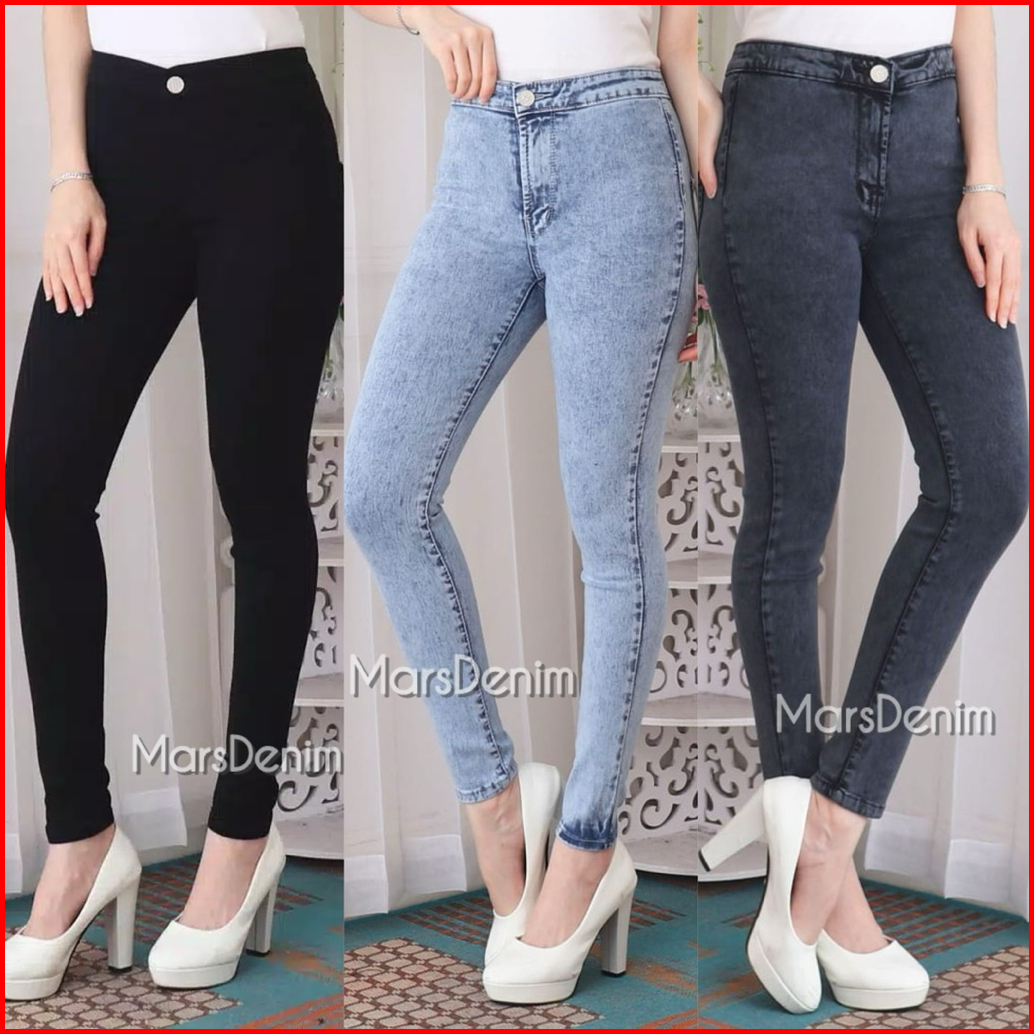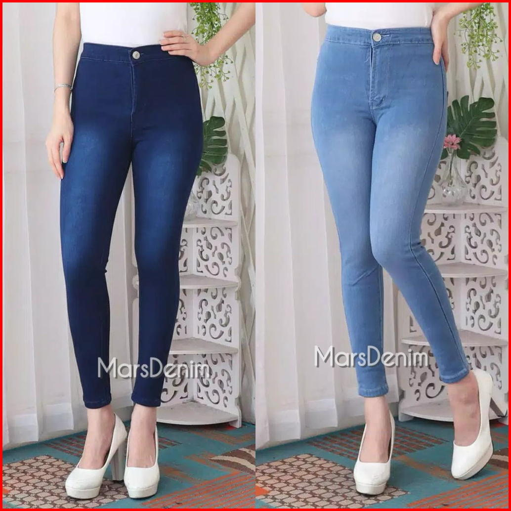 Celana Jeans Highwaist Polos Wanita Cewek Stretchable
