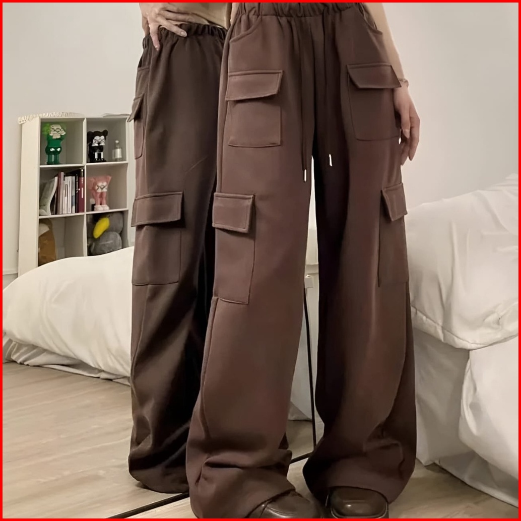 Vallina - Jooly Up Pant Cargo Celana Panjang Pocket Oversized Fleece Tebal Korean Remaja Wanita - Fuji Sweatpant